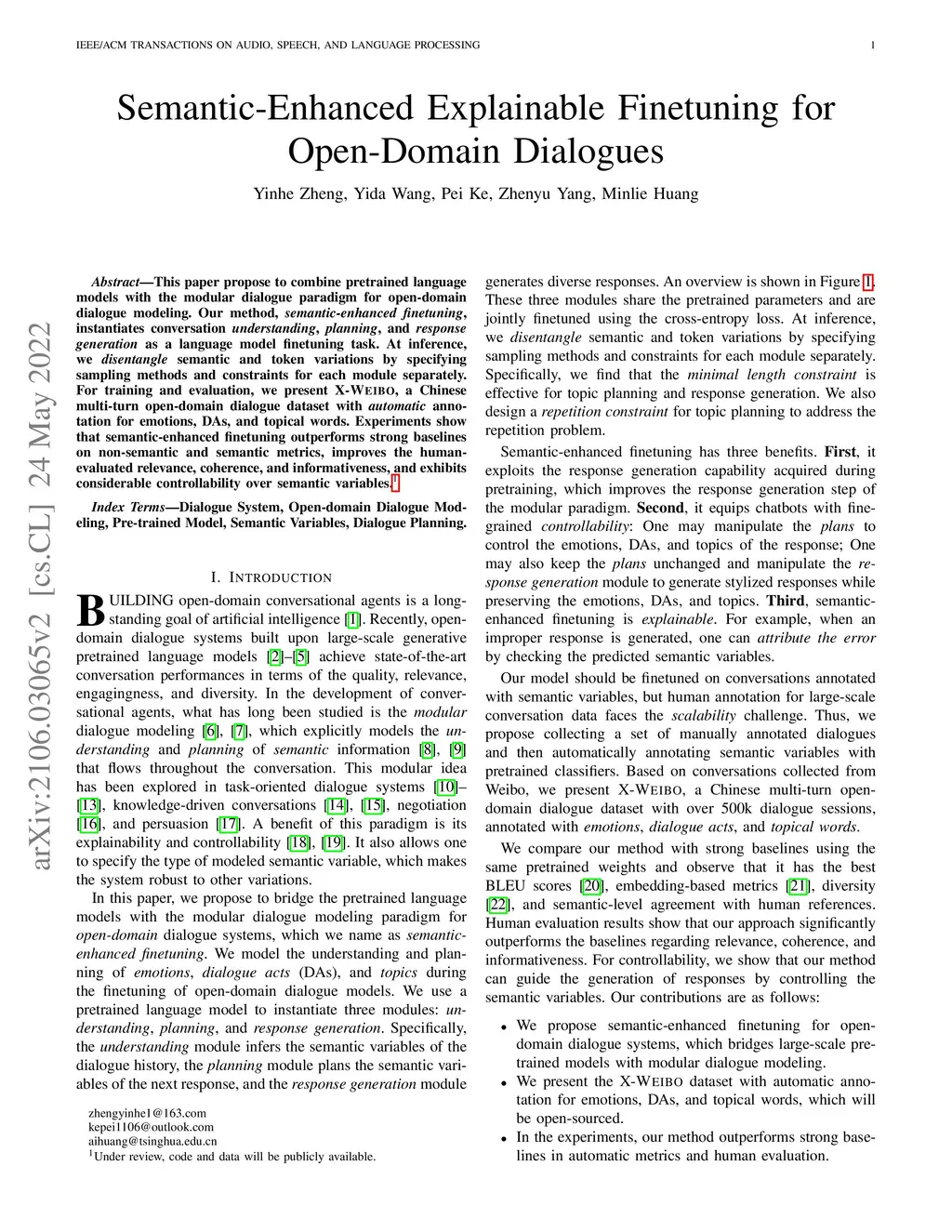 This paper propose to combine pretrained language models with the modular dialogue paradigm for open-domain dialogue modeling. Our method, semantic-enhanced finetuning, instantiates conversation understanding, planning, and response generation as a language model finetuning task. At inference, we disentangle semantic and token variations by specifying sampling methods and constraints for each module separately. For training and evaluation, we present X-Weibo, a Chinese multi-turn open-domain dialogue dataset with automatic annotation for emotions, DAs, and topical words. Experiments show that semantic-enhanced finetuning outperforms strong baselines on non-semantic and semantic metrics, improves the human-evaluated relevance, coherence, and informativeness, and exhibits considerable controllability over semantic variables.