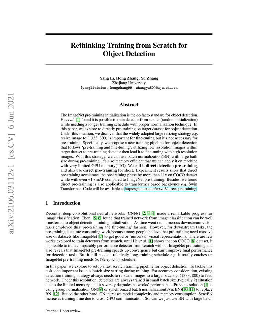 Rethinking Training from Scratch for Object Detection