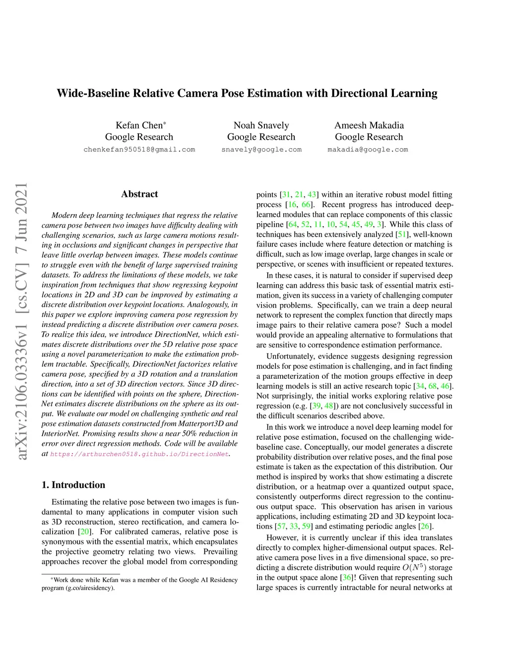 Wide-Baseline Relative Camera Pose Estimation with Directional Learning