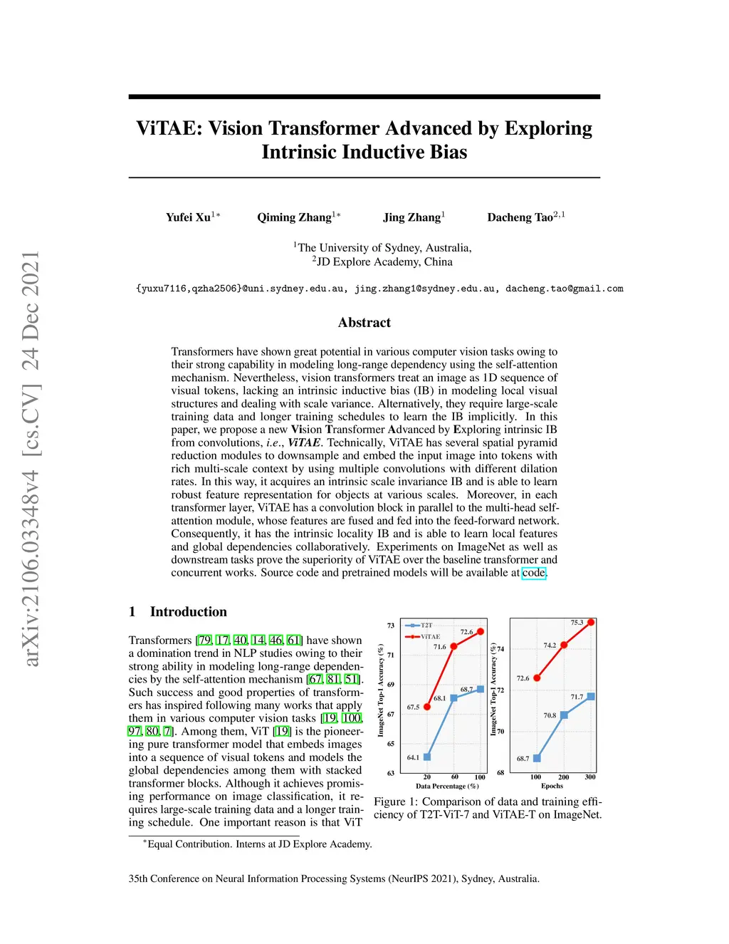 ViTAE: Vision Transformer Advanced by Exploring Intrinsic Inductive Bias