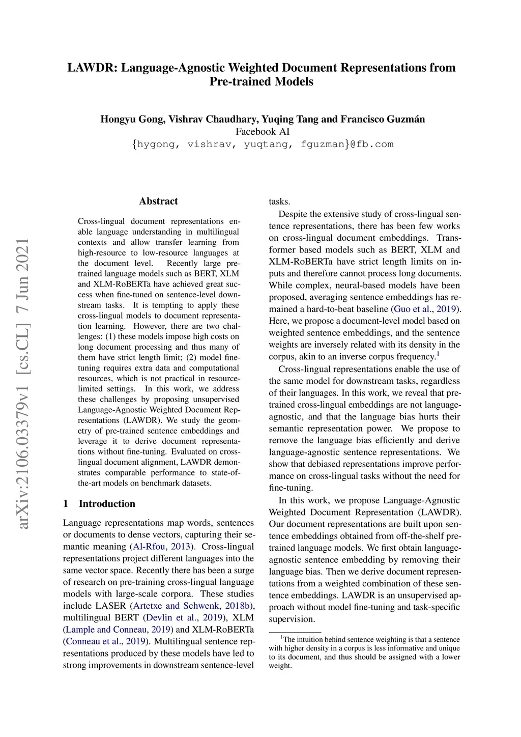LAWDR: Language-Agnostic Weighted Document Representations from