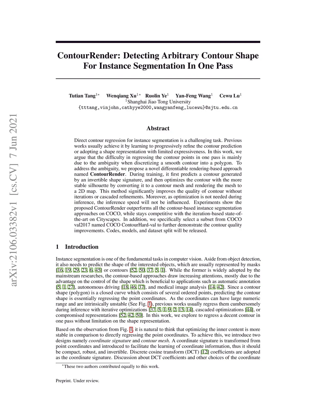 ContourRender: Detecting Arbitrary Contour Shape For Instance