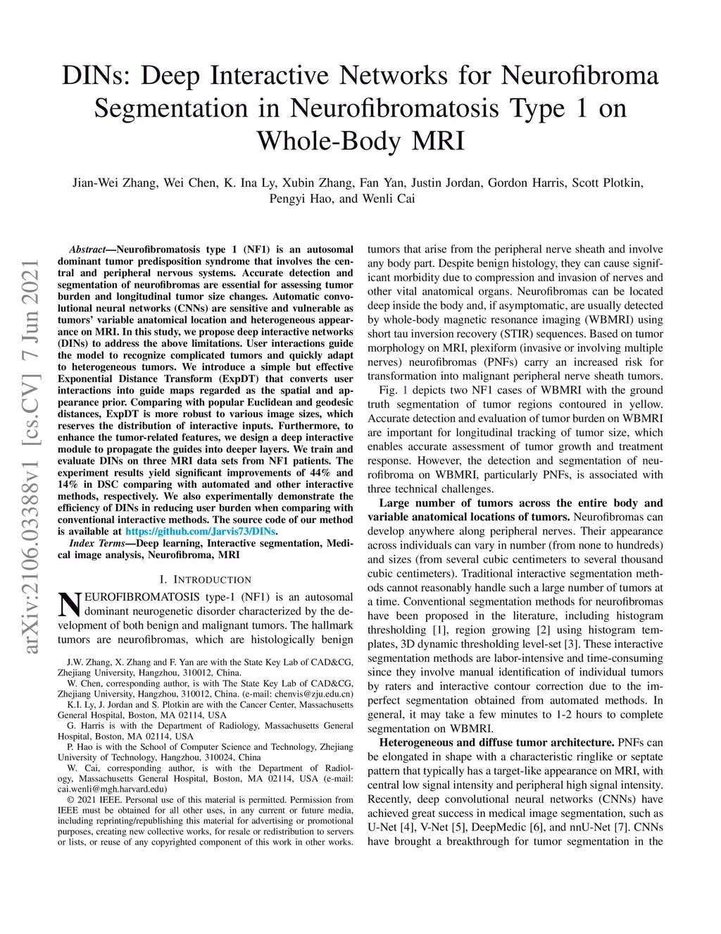 DINs: Deep Interactive Networks for Neurofibroma Segmentation in