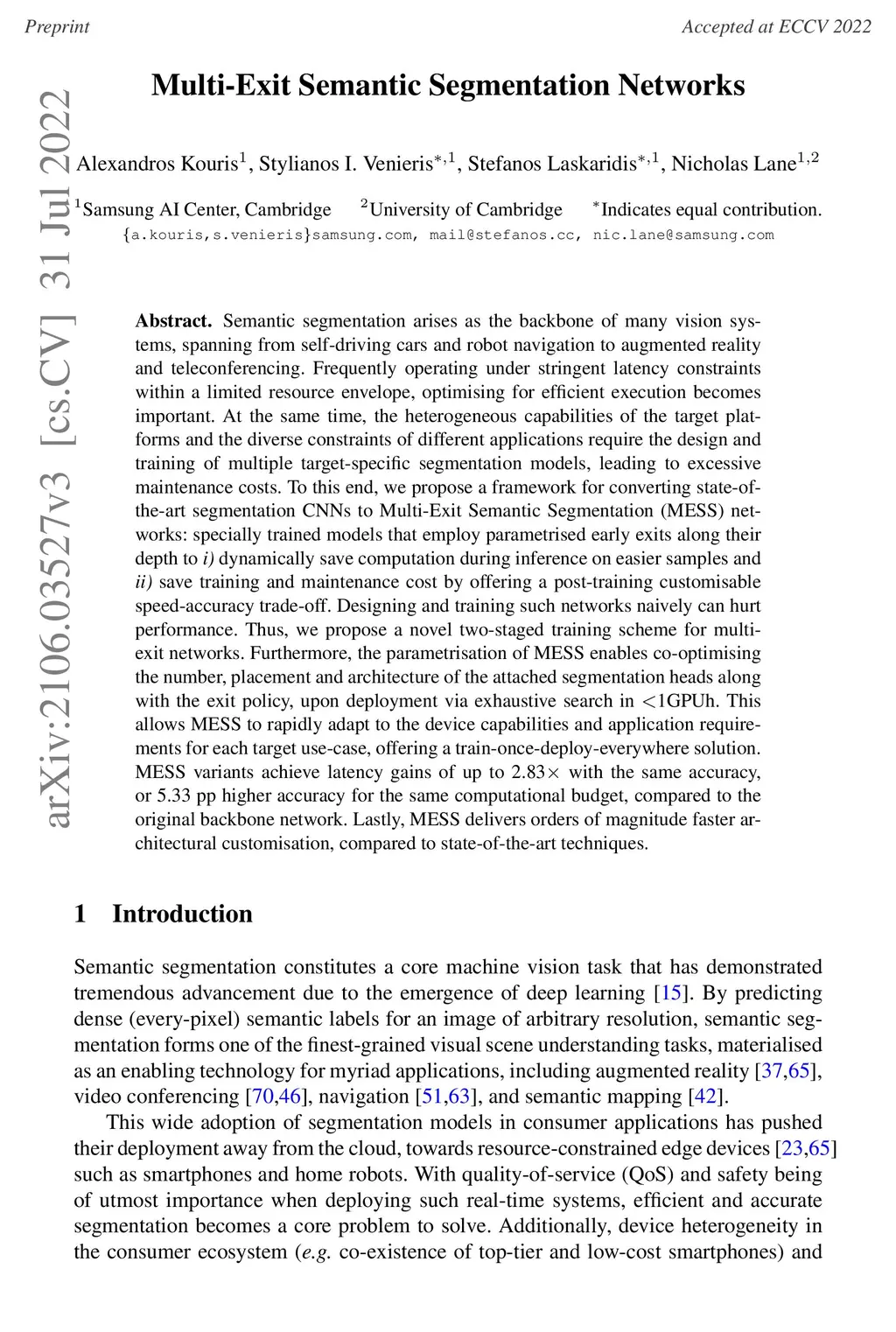 Semantic segmentation arises as the backbone of many vision systems, spanning from self-driving cars and robot navigation to augmented reality and teleconferencing. Frequently operating under stringent latency constraints within a limited resource envelope, optimising for efficient execution becomes important. At the same time, the heterogeneous capabilities of the target platforms and the diverse constraints of different applications require the design and training of multiple target-specific segmentation models, leading to excessive maintenance costs. To this end, we propose a framework for converting state-of-the-art segmentation CNNs to Multi-Exit Semantic Segmentation (MESS) networks: specially trained models that employ parametrised early exits along their depth to i) dynamically save computation during inference on easier samples and ii) save training and maintenance cost by offering a post-training customisable speed-accuracy trade-off. Designing and training such networks naively can hurt performance. Thus, we propose a novel two-staged training scheme for multi-exit networks. Furthermore, the parametrisation of MESS enables co-optimising the number, placement and architecture of the attached segmentation heads along with the exit policy, upon deployment via exhaustive search in <1 GPUh. This allows MESS to rapidly adapt to the device capabilities and application requirements for each target use-case, offering a train-once-deploy-everywhere solution. MESS variants achieve latency gains of up to 2.83x with the same accuracy, or 5.33 pp higher accuracy for the same computational budget, compared to the original backbone network. Lastly, MESS delivers orders of magnitude faster architectural customisation, compared to state-of-the-art techniques.