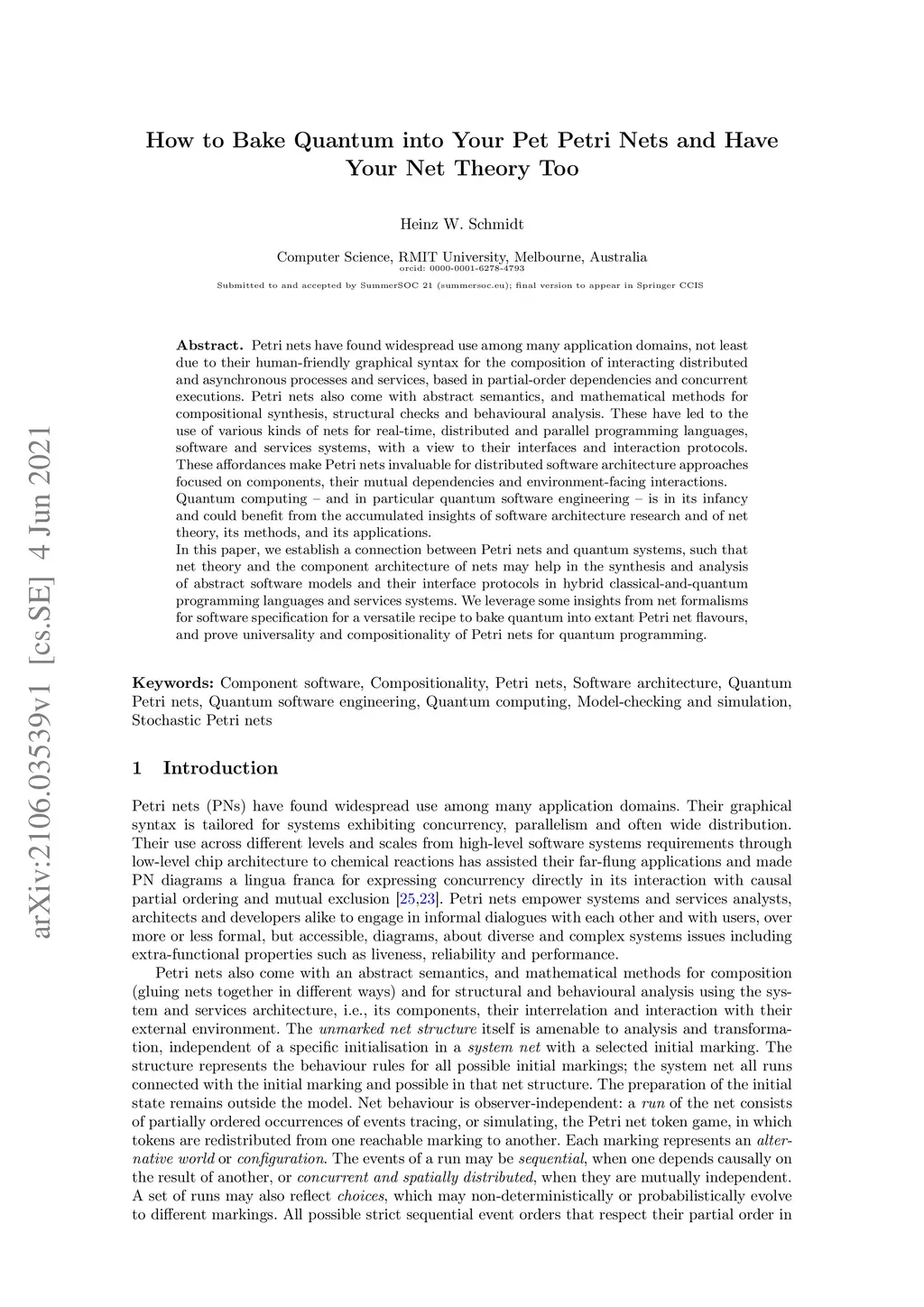 Petri nets have found widespread use among many application domains, not least due to their human-friendly graphical syntax for the composition of interacting distributed and asynchronous processes and services, based in partial-order dependencies and concurrent executions. Petri nets also come with abstract semantics, and mathematical methods for compositional synthesis, structural checks and behavioural analysis. These have led to the use of various kinds of nets for real-time, distributed and parallel programming languages, software and services systems, with a view to their interfaces and interaction protocols. These affordances make Petri nets invaluable for distributed software architecture approaches focused on components, their mutual dependencies and environment-facing interactions. Quantum computing -- and in particular quantum software engineering -- is in its infancy and could benefit from the accumulated insights of software architecture research and of net theory, its methods, and its applications. In this paper, we establish a connection between Petri nets and quantum systems, such that net theory and the component architecture of nets may help in the synthesis and analysis of abstract software models and their interface protocols in hybrid classical-and-quantum programming languages and services systems. We leverage some insights from net formalisms for software specification for a versatile recipe to bake quantum into extant Petri net flavours, and prove universality and compositionality of Petri nets for quantum programming.