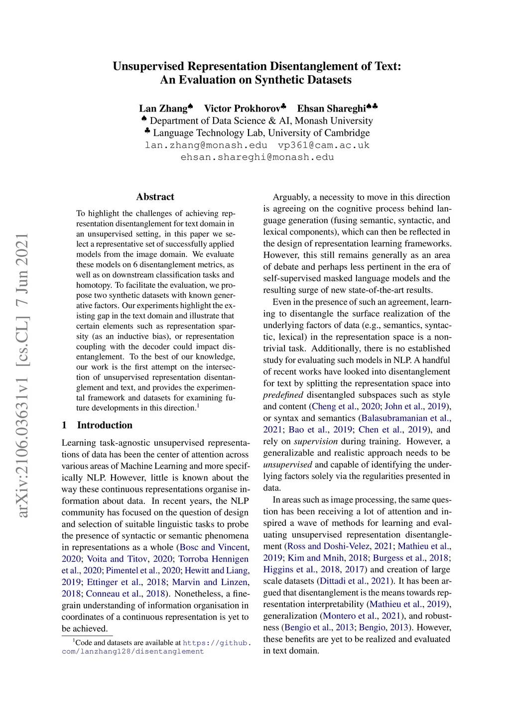 Unsupervised Representation Disentanglement of Text: An Evaluation on