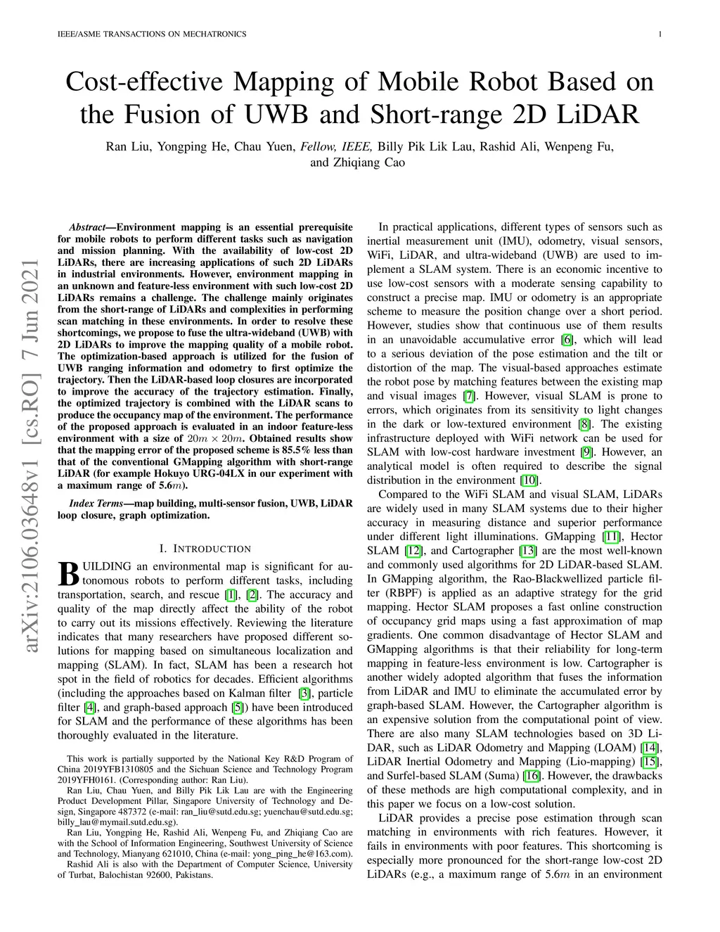 Cost-effective Mapping of Mobile Robot Based on the Fusion of UWB and