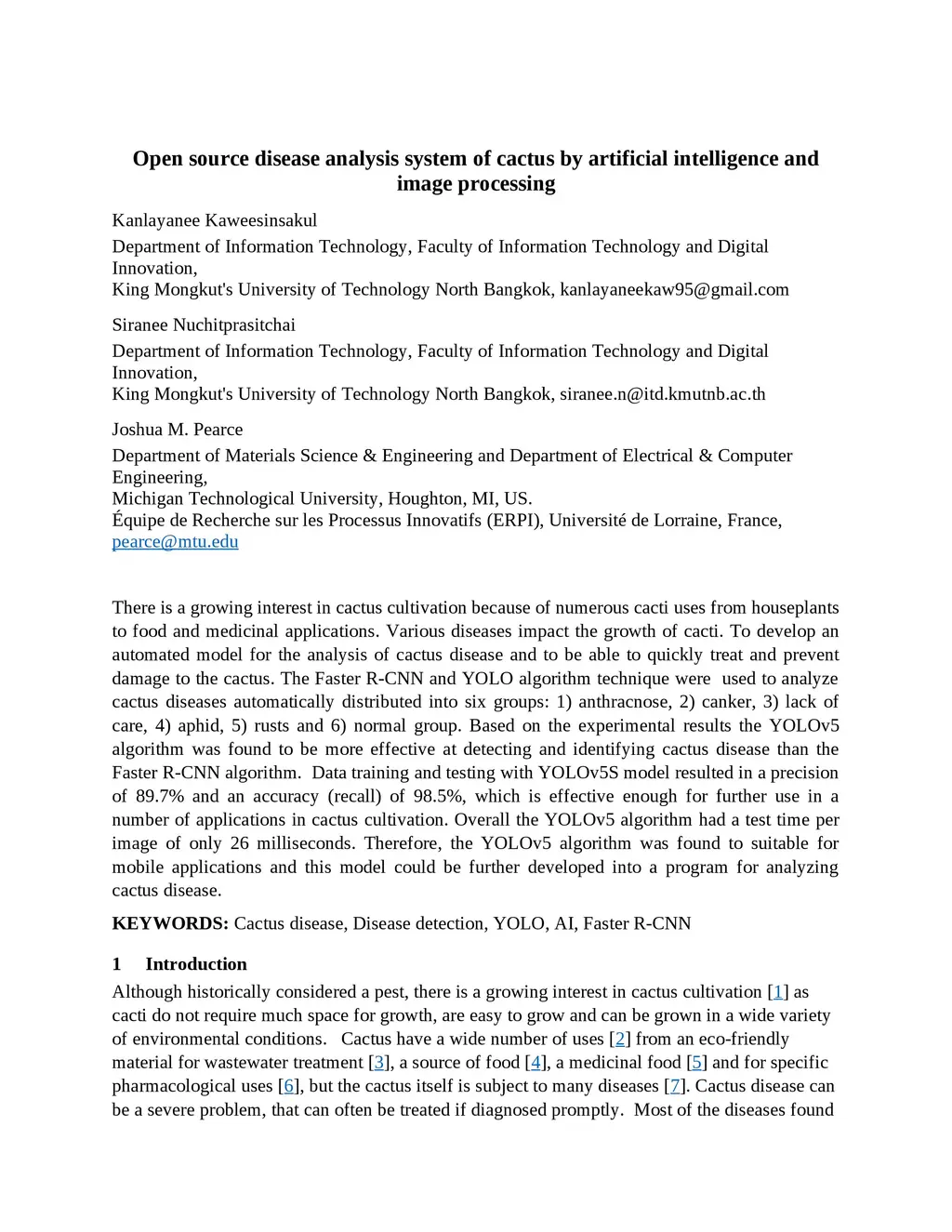 Open source disease analysis system of cactus by artificial intelligence
