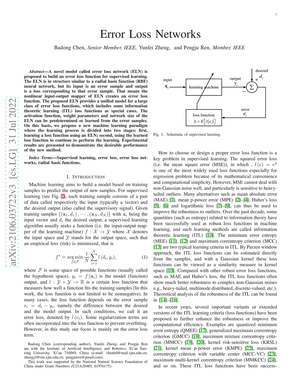A novel model called error loss network (ELN) is proposed to build an error loss function for supervised learning. The ELN is in structure similar to a RBF neural network, but its input is an error sample and output is a loss corresponding to that error sample. That means the nonlinear input-output mapper of ELN creates an error loss function. The proposed ELN provides a unified model for a large class of error loss functions, which includes some information theoretic learning (ITL) loss functions as special cases. The activation function, weight parameters and network size of the ELN can be predetermined or learned from the error samples. On this basis, we propose a new machine learning paradigm where the learning process is divided into two stages: first, learning a loss function using an ELN; second, using the learned loss function to continue to perform the learning. Experimental results are presented to demonstrate the desirable performance of the new method.