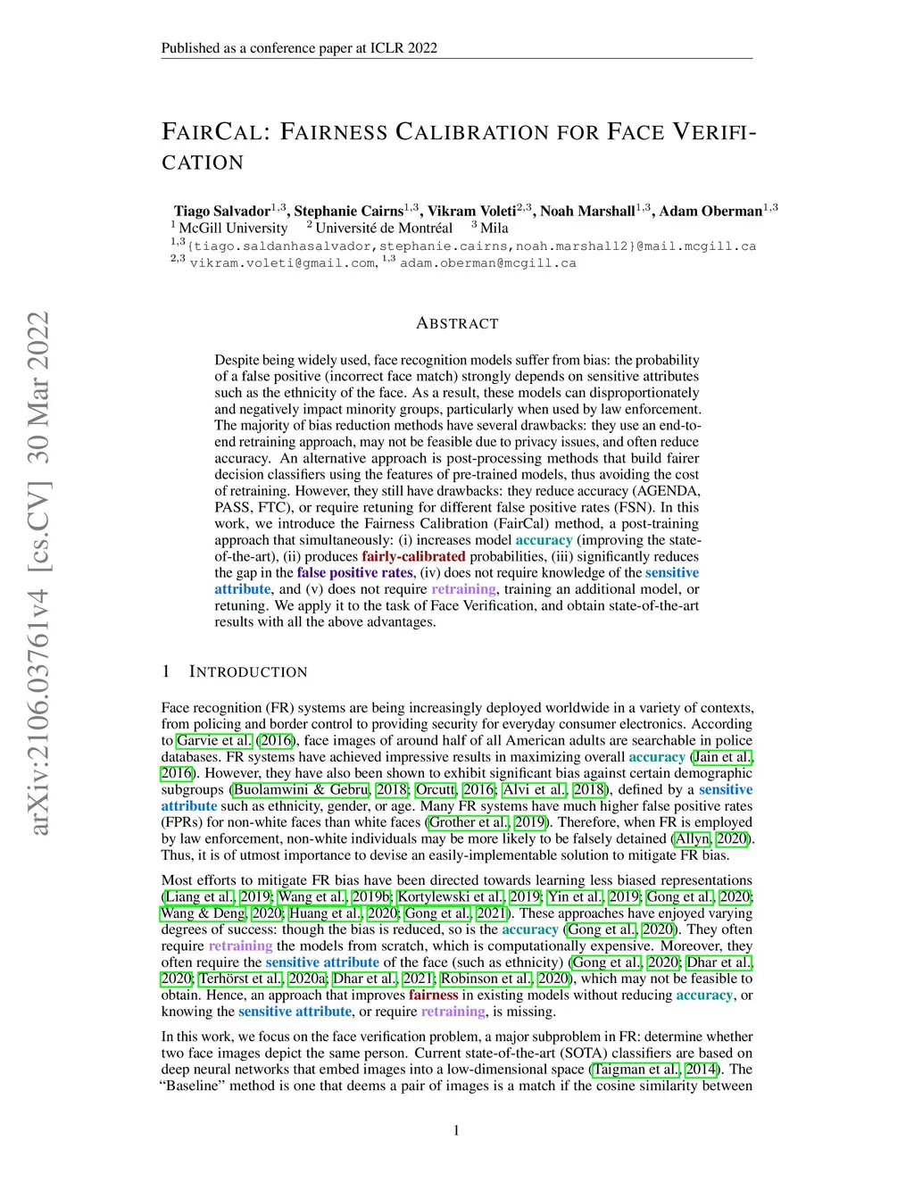 FairCal: Fairness Calibration for Face Verification