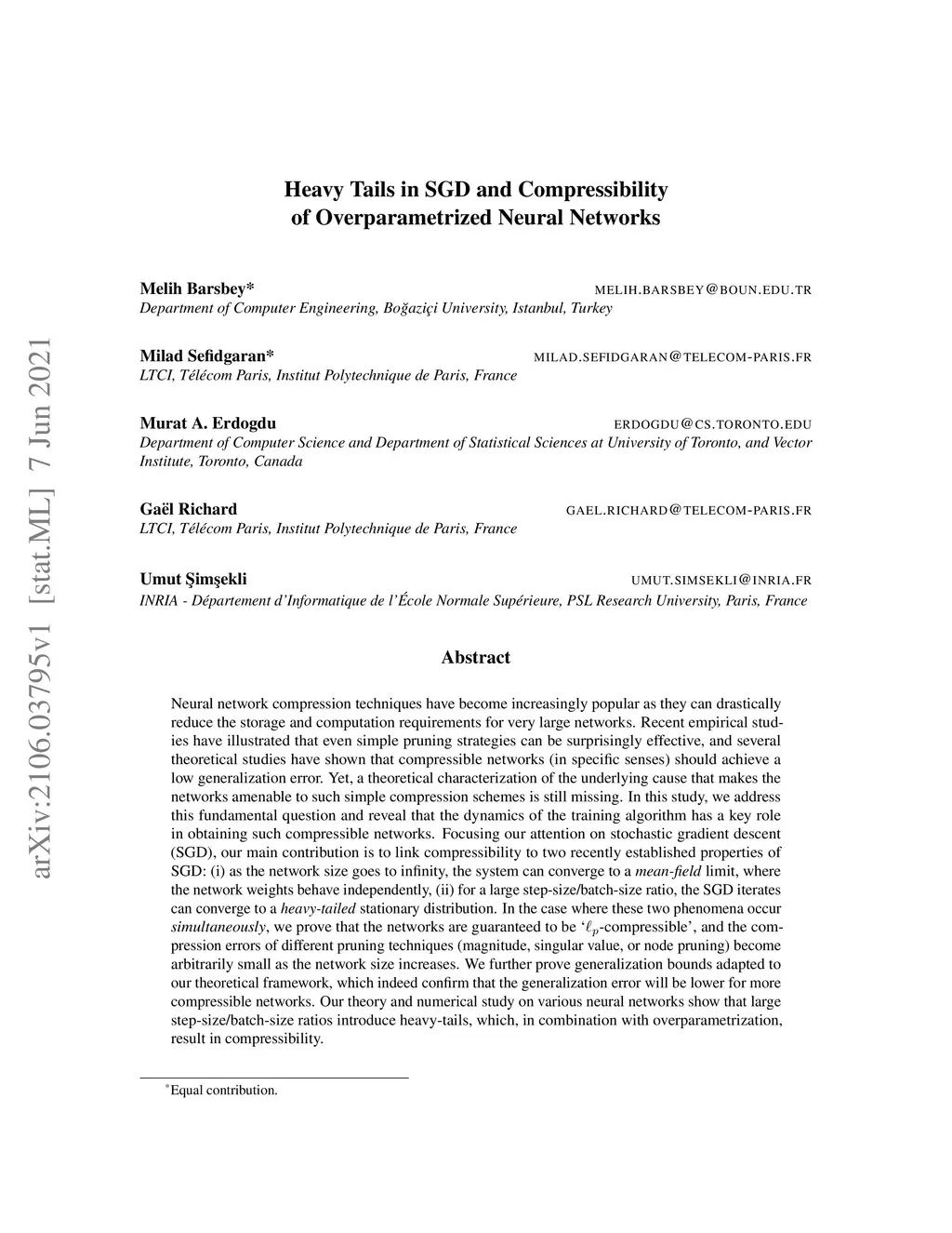 Heavy Tails in SGD and Compressibility of Overparametrized Neural