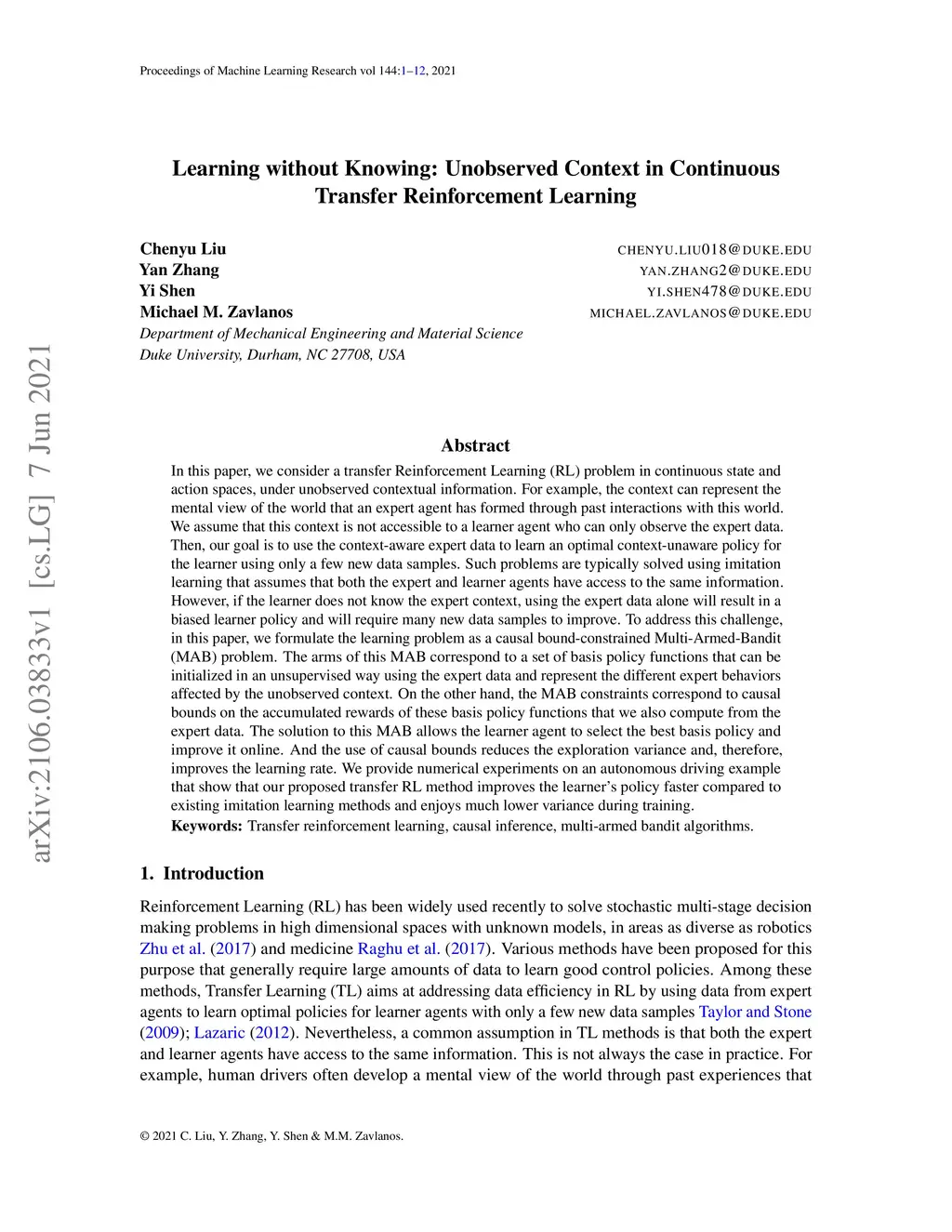 Learning without Knowing: Unobserved Context in Continuous Transfer