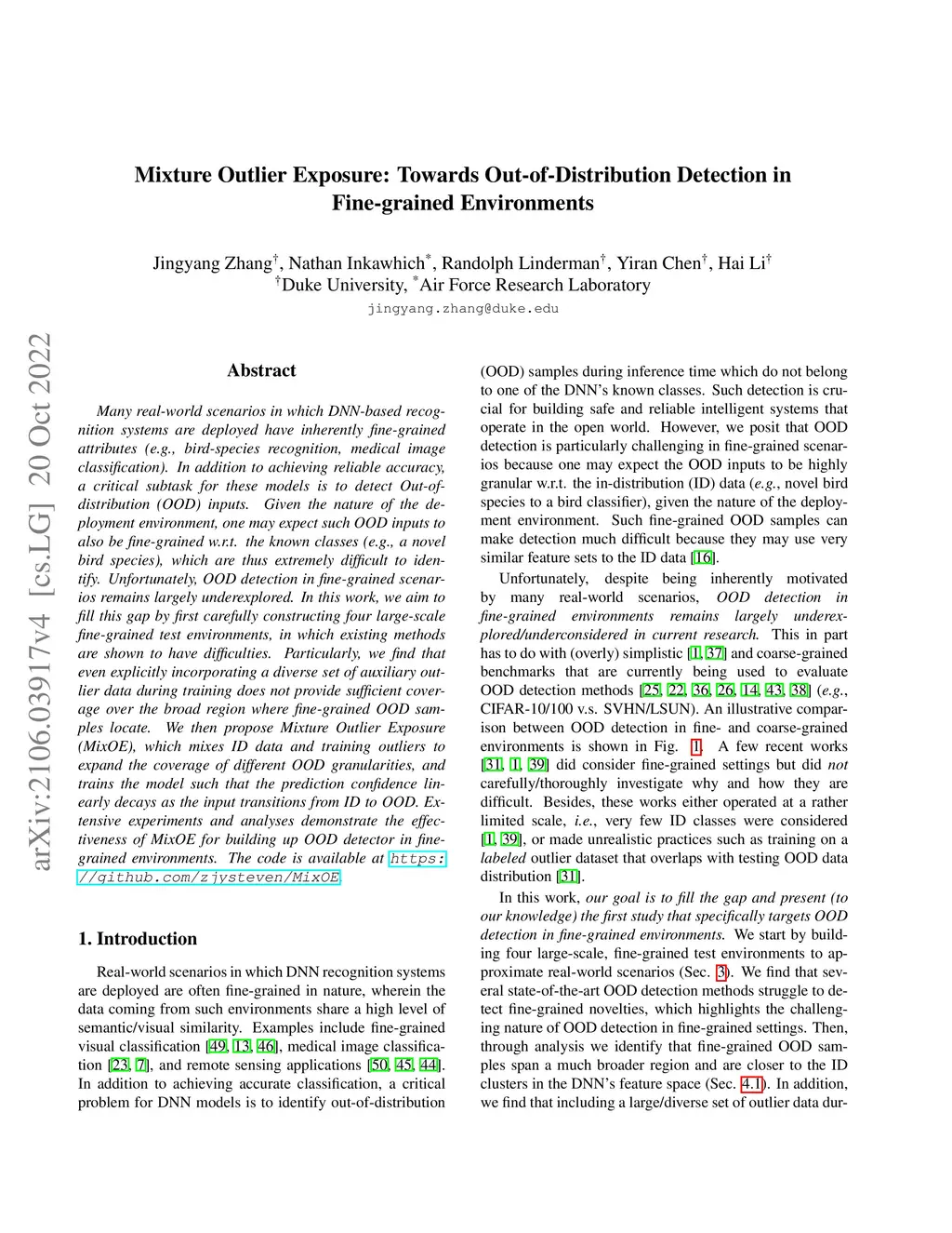 Mixture Outlier Exposure for Out-of-Distribution Detection in