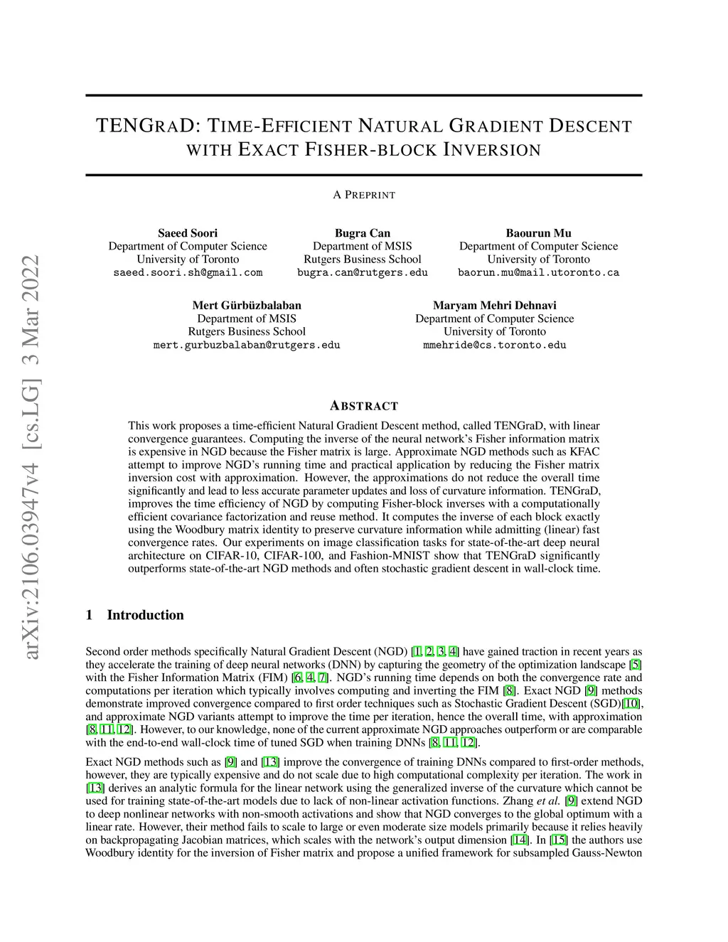 TENGraD: Time-Efficient Natural Gradient Descent with Exact Fisher-Block