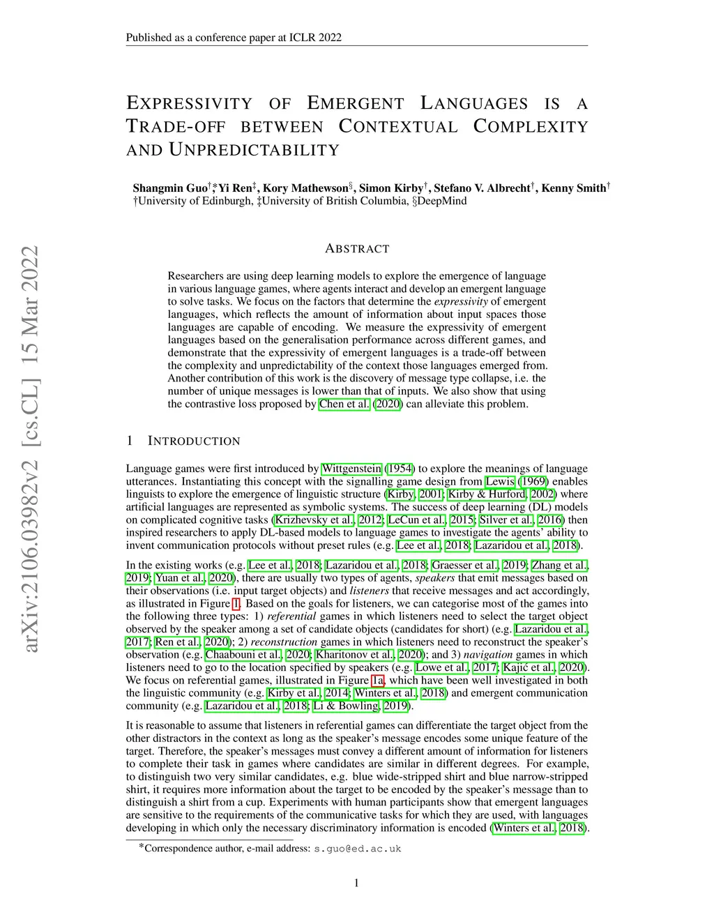 Researchers are using deep learning models to explore the emergence of language in various language games, where agents interact and develop an emergent language to solve tasks. We focus on the factors that determine the expressivity of emergent languages, which reflects the amount of information about input spaces those languages are capable of encoding. We measure the expressivity of emergent languages based on the generalisation performance across different games, and demonstrate that the expressivity of emergent languages is a trade-off between the complexity and unpredictability of the context those languages emerged from. Another contribution of this work is the discovery of message type collapse, i.e. the number of unique messages is lower than that of inputs. We also show that using the contrastive loss proposed by Chen et al. (2020) can alleviate this problem.