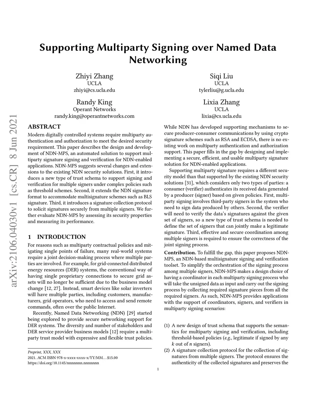 Supporting Multiparty Signing over Named Data Networking
