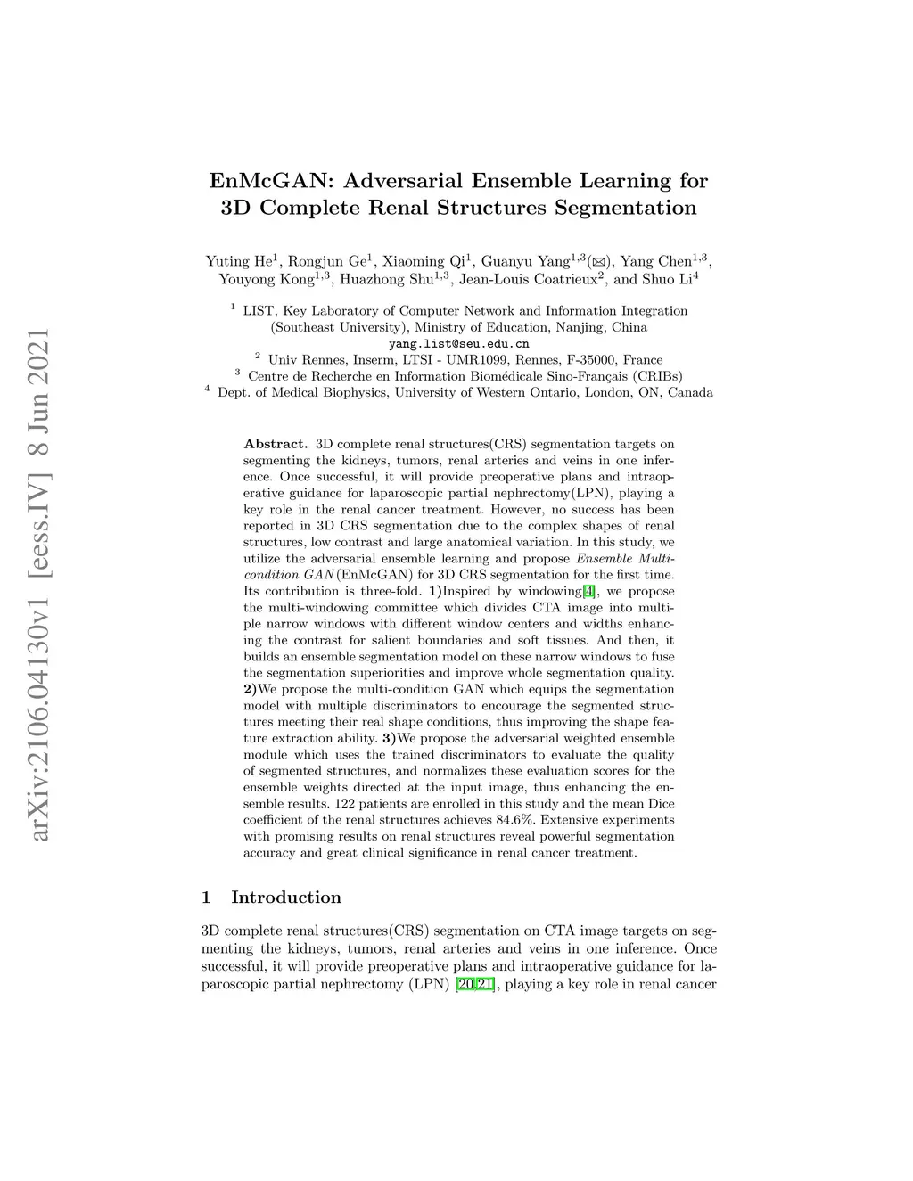 EnMcGAN: Adversarial Ensemble Learning for 3D Complete Renal Structures