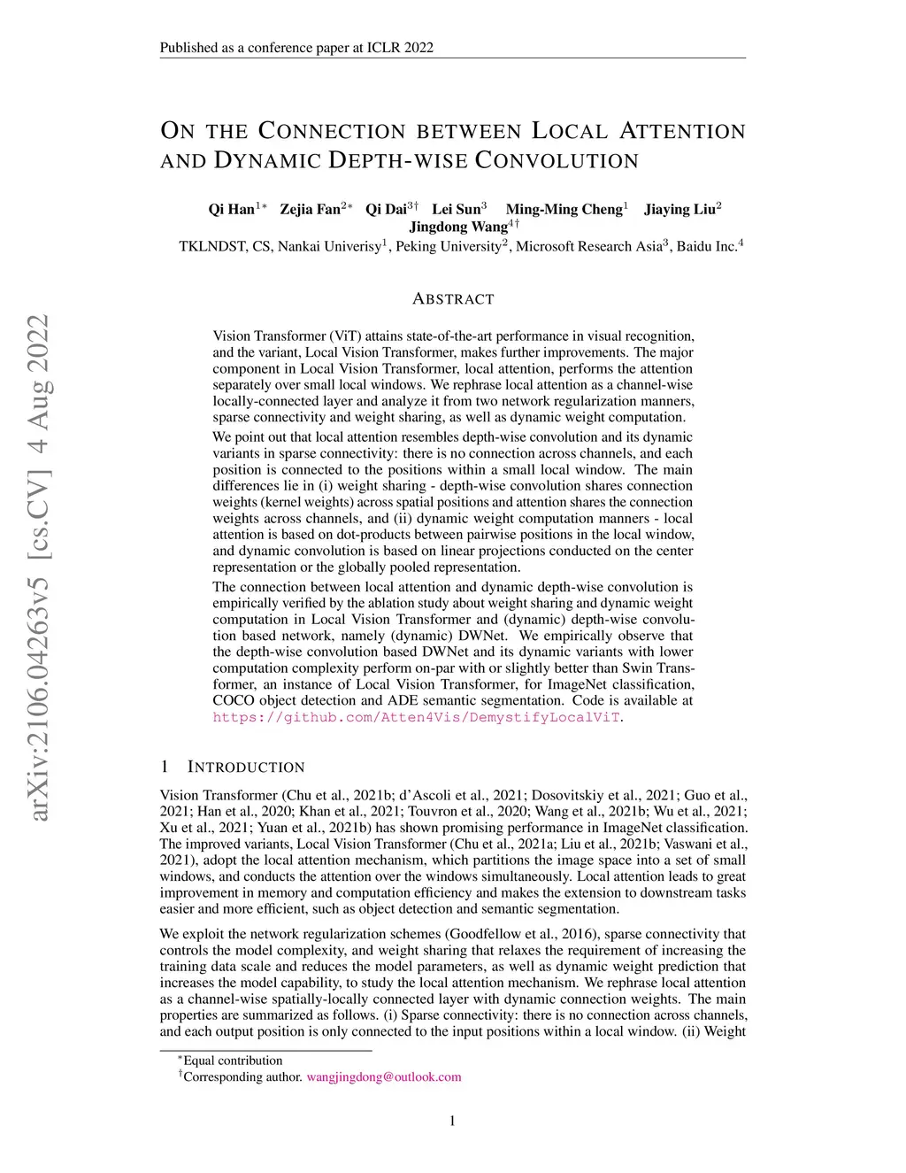 Vision Transformer (ViT) attains state-of-the-art performance in visual recognition, and the variant, Local Vision Transformer, makes further improvements. The major component in Local Vision Transformer, local attention, performs the attention separately over small local windows. We rephrase local attention as a channel-wise locally-connected layer and analyze it from two network regularization manners, sparse connectivity and weight sharing, as well as weight computation. Sparse connectivity: there is no connection across channels, and each position is connected to the positions within a small local window. Weight sharing: the connection weights for one position are shared across channels or within each group of channels. Dynamic weight: the connection weights are dynamically predicted according to each image instance. We point out that local attention resembles depth-wise convolution and its dynamic version in sparse connectivity. The main difference lies in weight sharing - depth-wise convolution shares connection weights (kernel weights) across spatial positions. We empirically observe that the models based on depth-wise convolution and the dynamic variant with lower computation complexity perform on-par with or sometimes slightly better than Swin Transformer, an instance of Local Vision Transformer, for ImageNet classification, COCO object detection and ADE semantic segmentation. These observations suggest that Local Vision Transformer takes advantage of two regularization forms and dynamic weight to increase the network capacity. Code is available at https://github.com/Atten4Vis/DemystifyLocalViT.