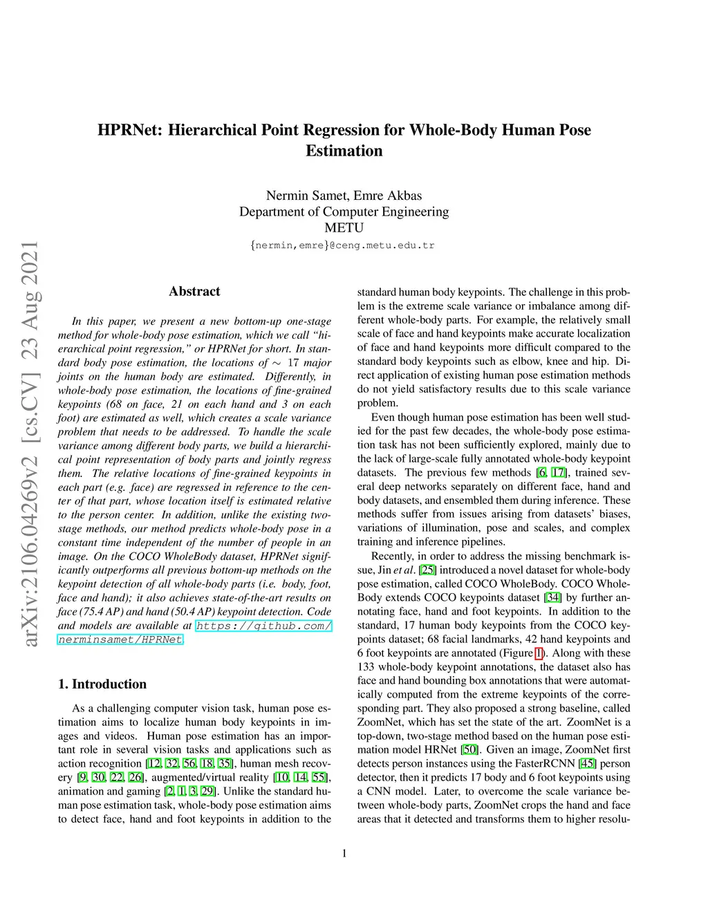 HPRNet: Hierarchical Point Regression for Whole-Body Human Pose