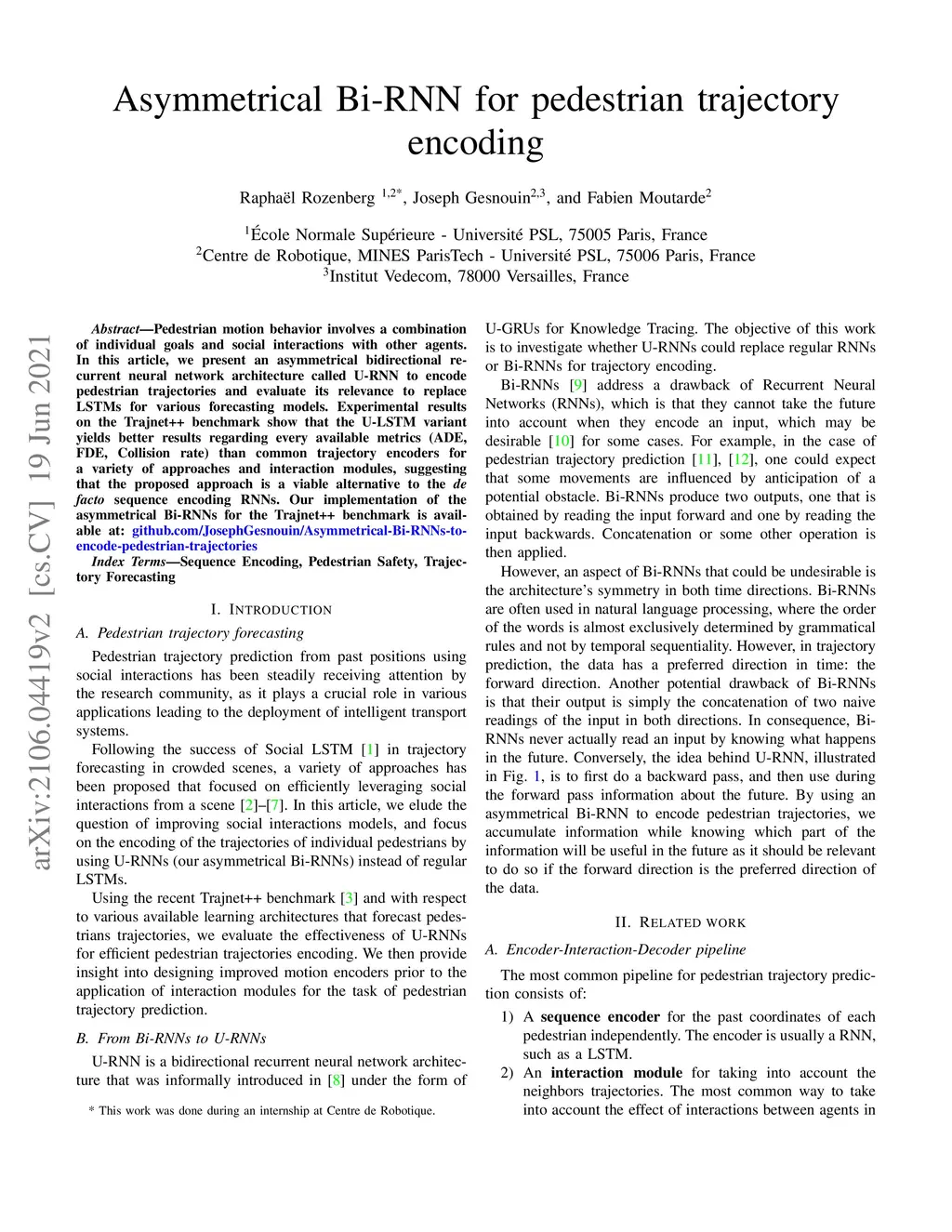 Asymmetrical Bi-RNN for pedestrian trajectory encoding