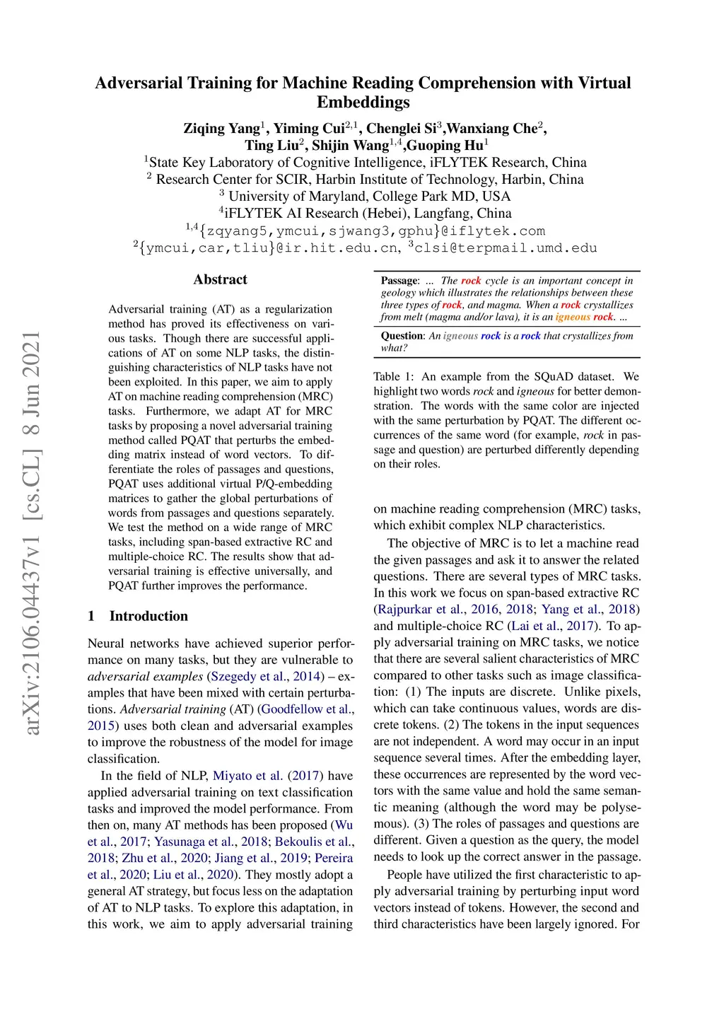 Adversarial Training for Machine Reading Comprehension with Virtual