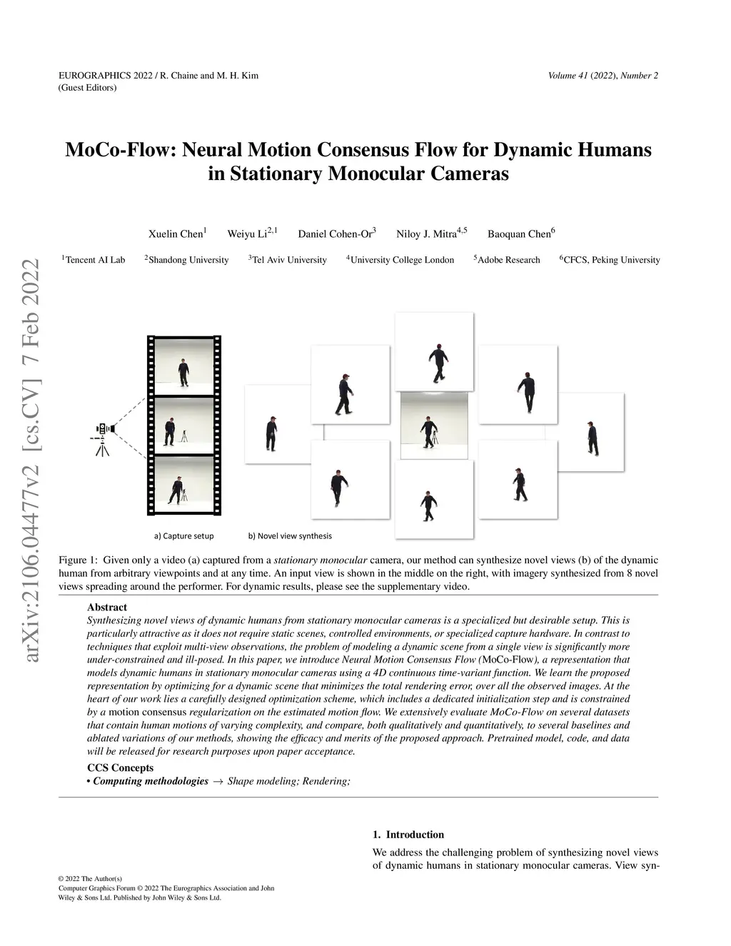 MoCo-Flow: Neural Motion Consensus Flow for Dynamic Humans in Stationary