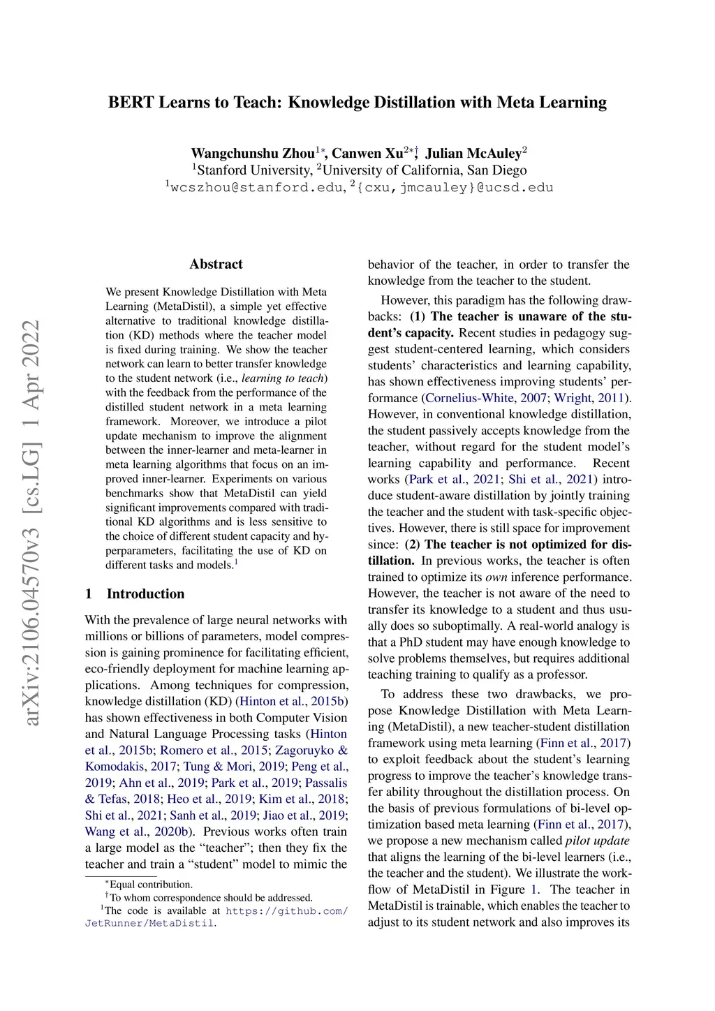 BERT Learns to Teach: Knowledge Distillation with Meta Learning