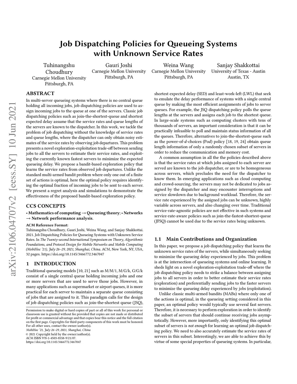 Job Dispatching Policies for Queueing Systems with Unknown Service Rates