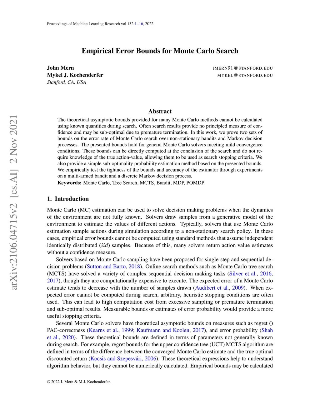 Measurable Monte Carlo Search Error Bounds