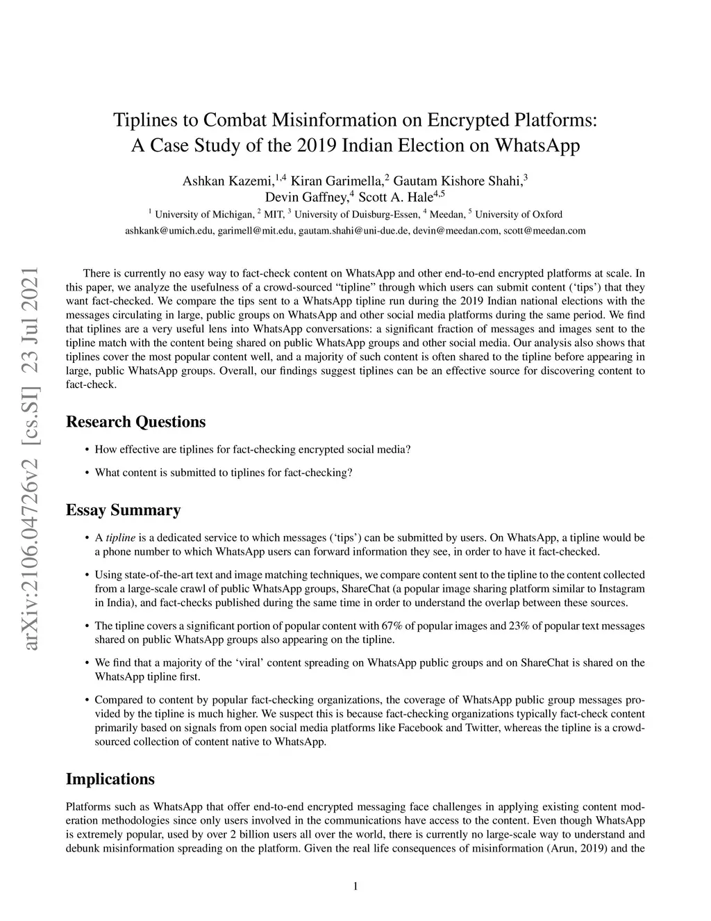 of the 2019 Indian Election on WhatsApp