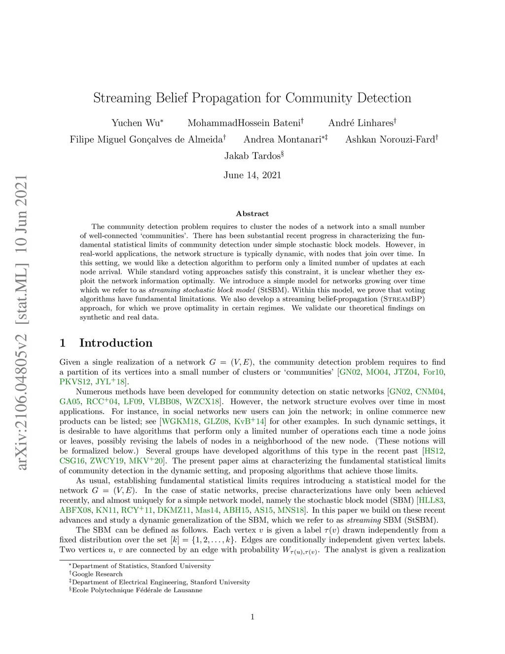 Streaming Belief Propagation for Community Detection