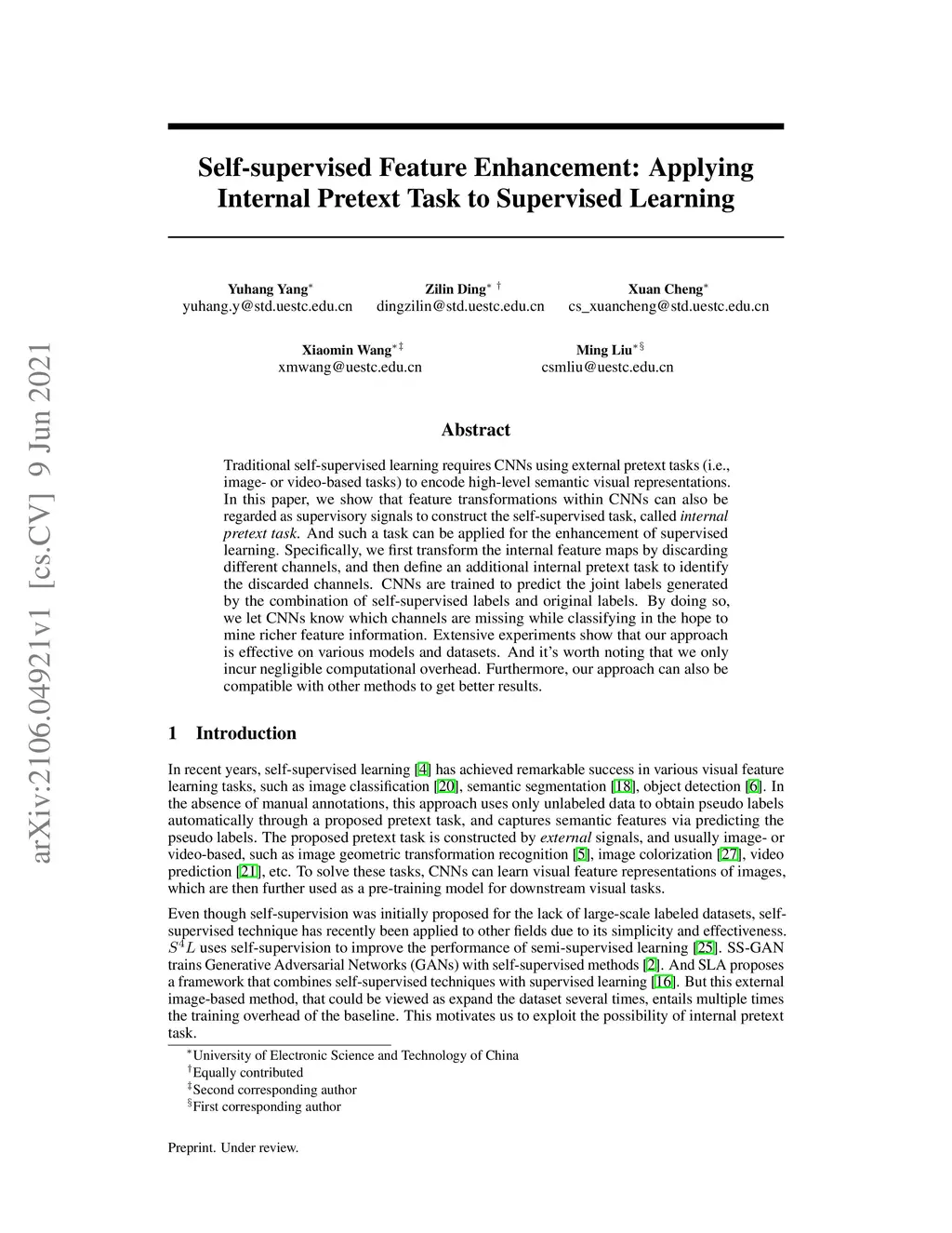 Self-supervised Feature Enhancement: Applying Internal Pretext Task to
