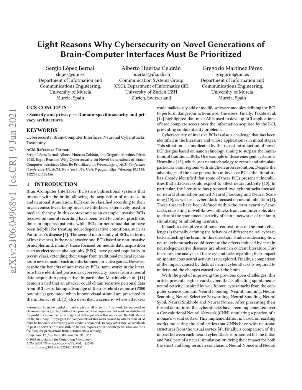 Eight Reasons Why Cybersecurity on Novel Generations of Brain-Computer