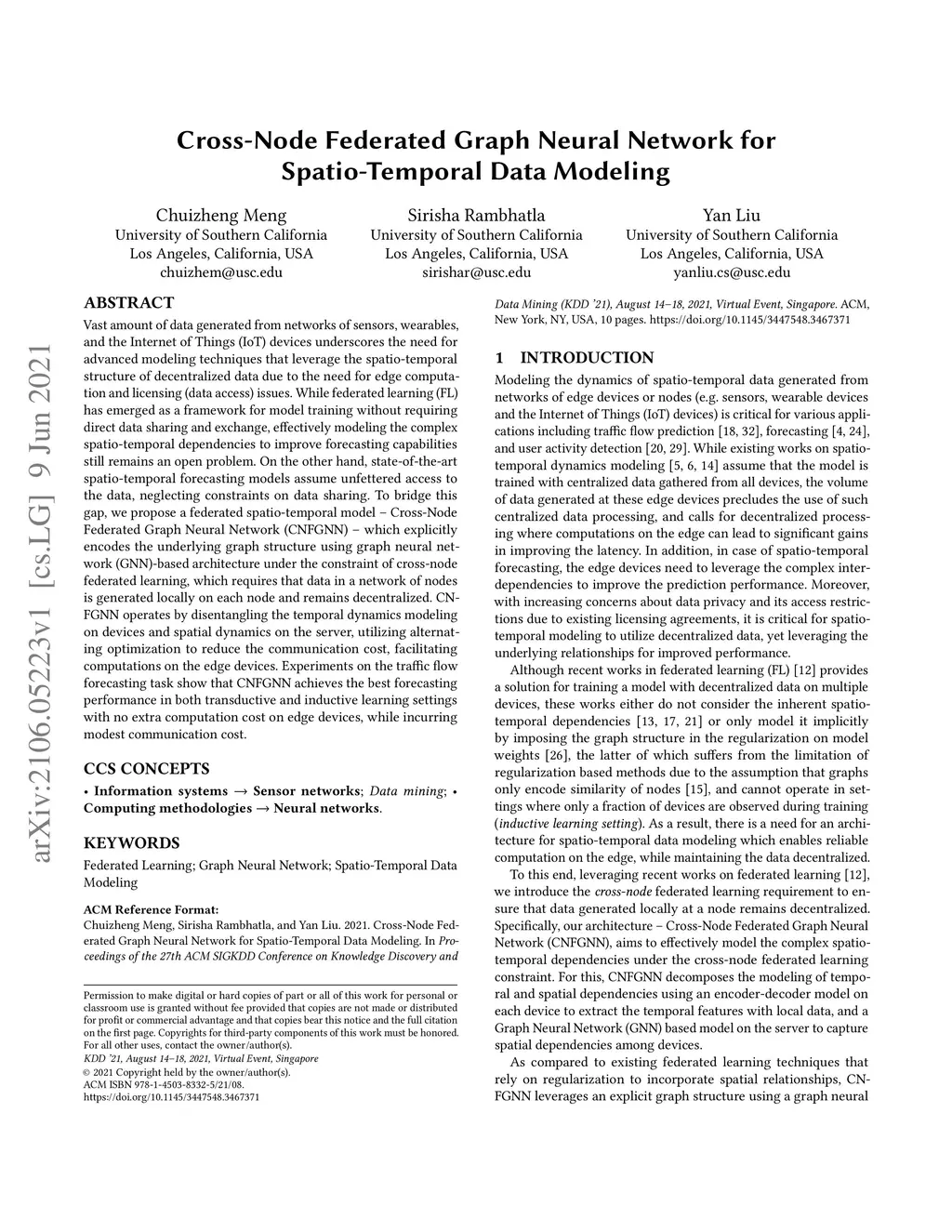 Cross-Node Federated Graph Neural Network for Spatio-Temporal Data