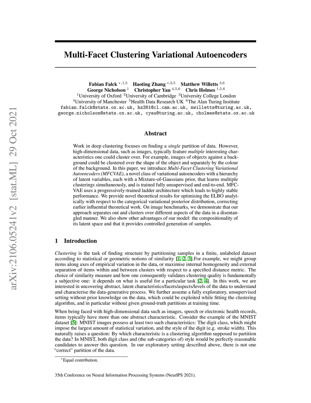 Multi-Facet Clustering Variational Autoencoders