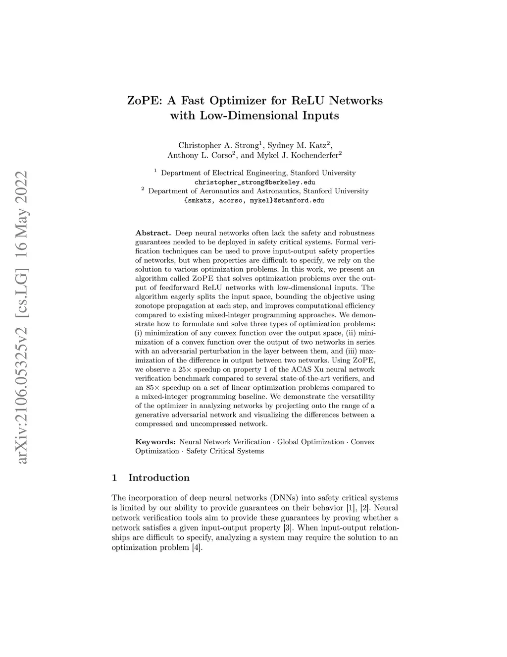 ZoPE: A Fast Optimizer for ReLU Networks with Low-Dimensional Inputs