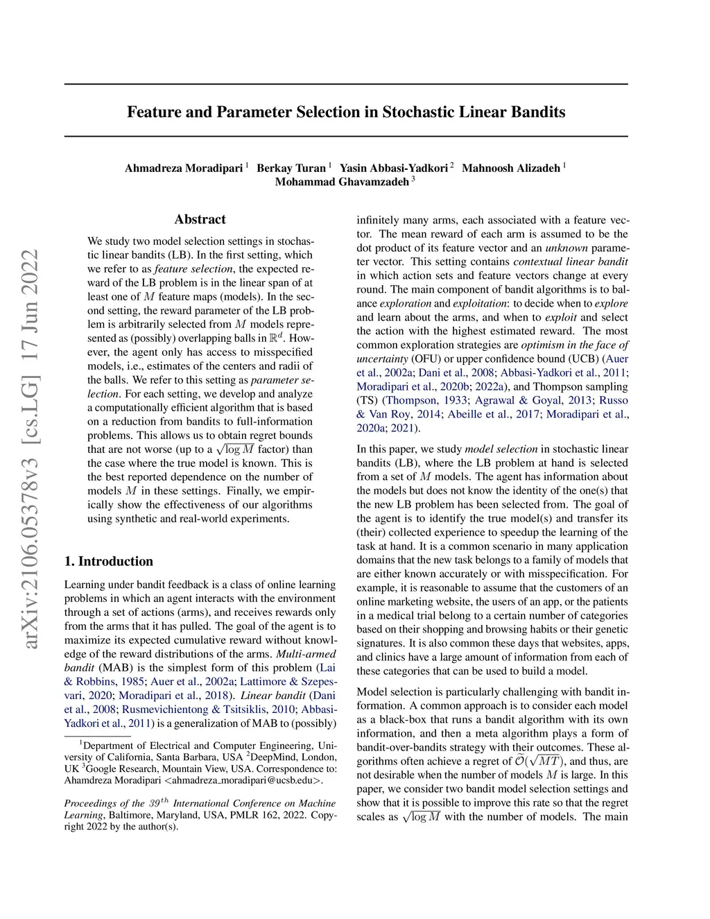 Feature and Parameter Selection in Stochastic Linear Bandits