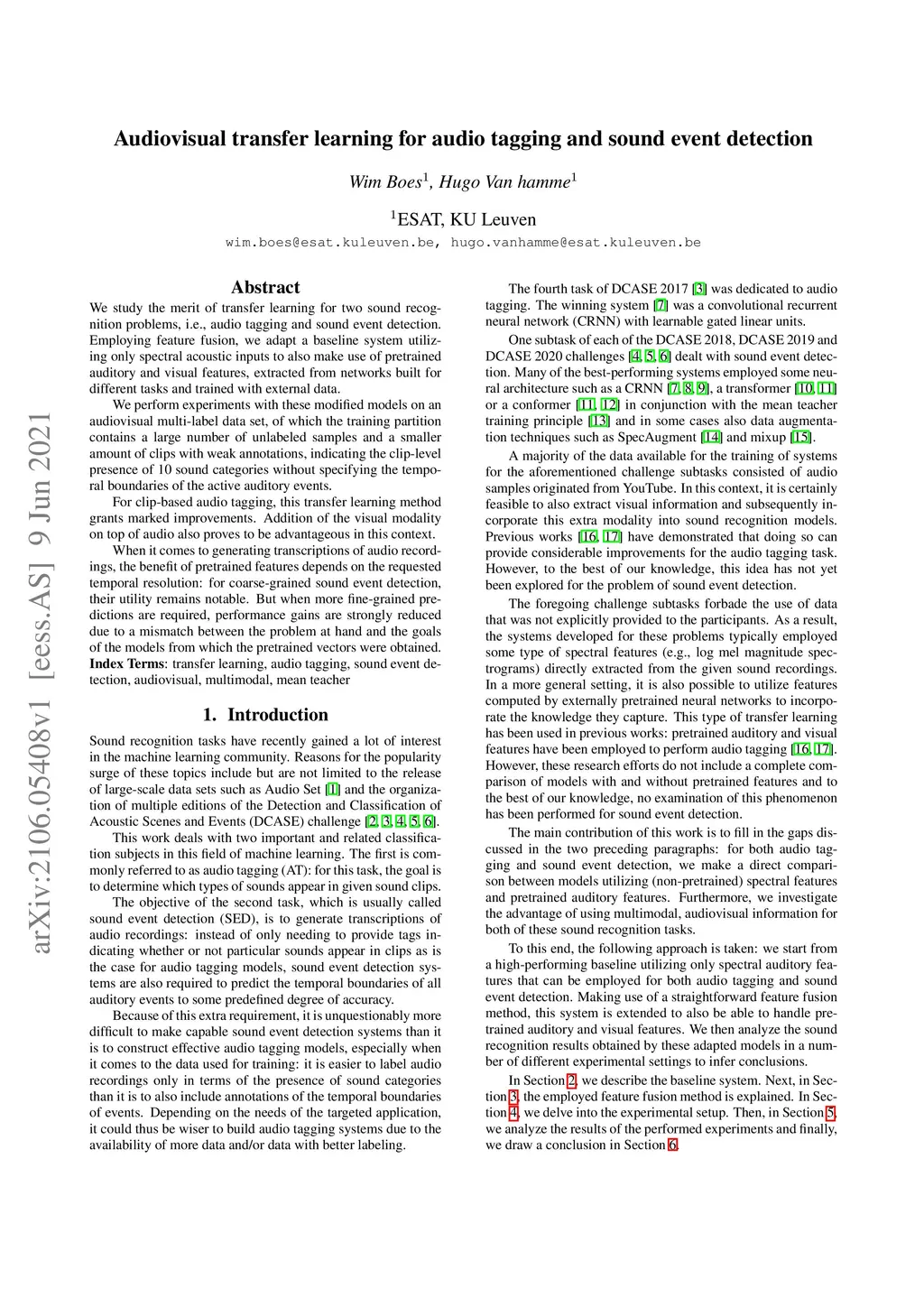 Audiovisual transfer learning for audio tagging and sound event