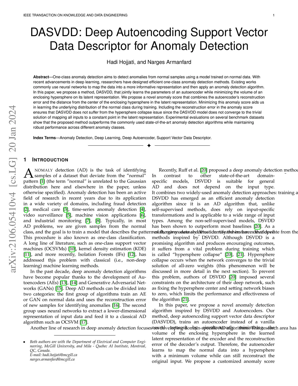 DASVDD: Deep Autoencoding Support Vector Data Descriptor for Anomaly