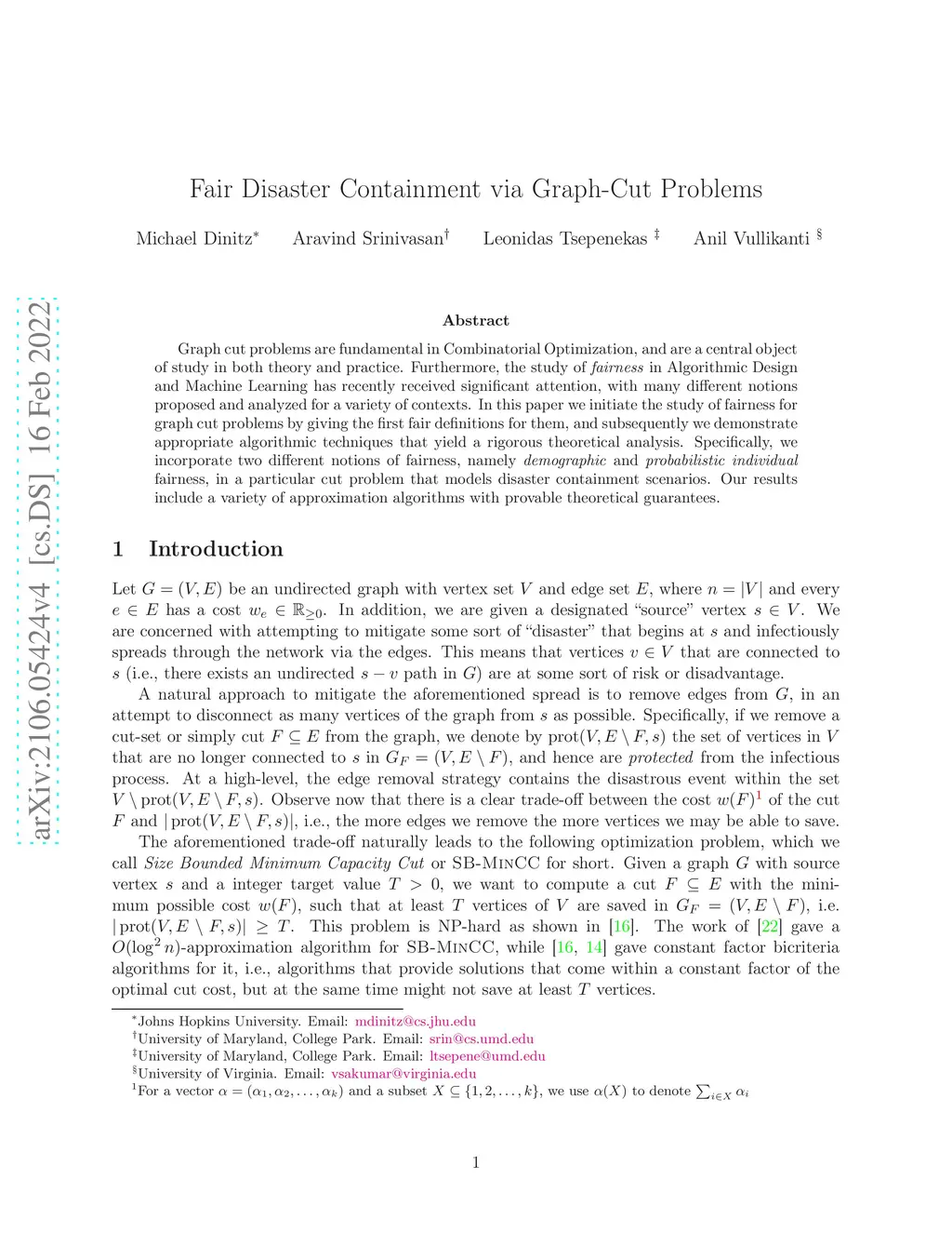 Fair Disaster Containment via Graph-Cut Problems