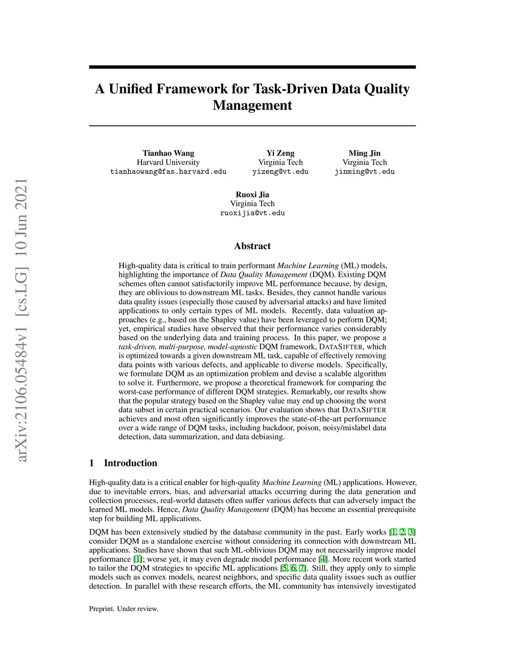 High-quality data is critical to train performant Machine Learning (ML) models, highlighting the importance of Data Quality Management (DQM). Existing DQM schemes often cannot satisfactorily improve ML performance because, by design, they are oblivious to downstream ML tasks. Besides, they cannot handle various data quality issues (especially those caused by adversarial attacks) and have limited applications to only certain types of ML models. Recently, data valuation approaches (e.g., based on the Shapley value) have been leveraged to perform DQM; yet, empirical studies have observed that their performance varies considerably based on the underlying data and training process. In this paper, we propose a task-driven, multi-purpose, model-agnostic DQM framework, DataSifter, which is optimized towards a given downstream ML task, capable of effectively removing data points with various defects, and applicable to diverse models. Specifically, we formulate DQM as an optimization problem and devise a scalable algorithm to solve it. Furthermore, we propose a theoretical framework for comparing the worst-case performance of different DQM strategies. Remarkably, our results show that the popular strategy based on the Shapley value may end up choosing the worst data subset in certain practical scenarios. Our evaluation shows that DataSifter achieves and most often significantly improves the state-of-the-art performance over a wide range of DQM tasks, including backdoor, poison, noisy/mislabel data detection, data summarization, and data debiasing.