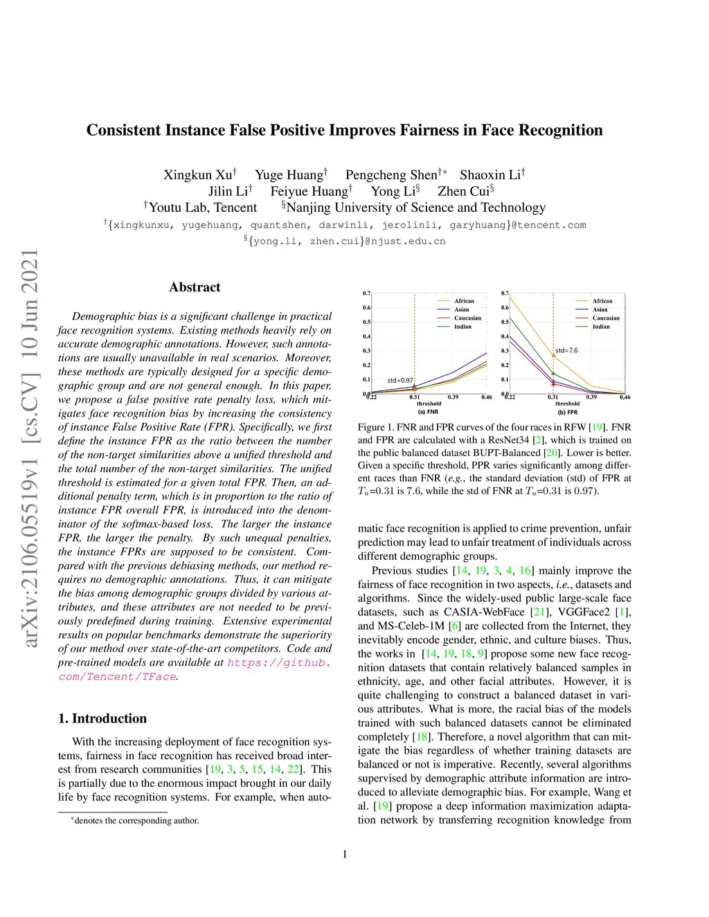 Consistent Instance False Positive Improves Fairness in Face Recognition