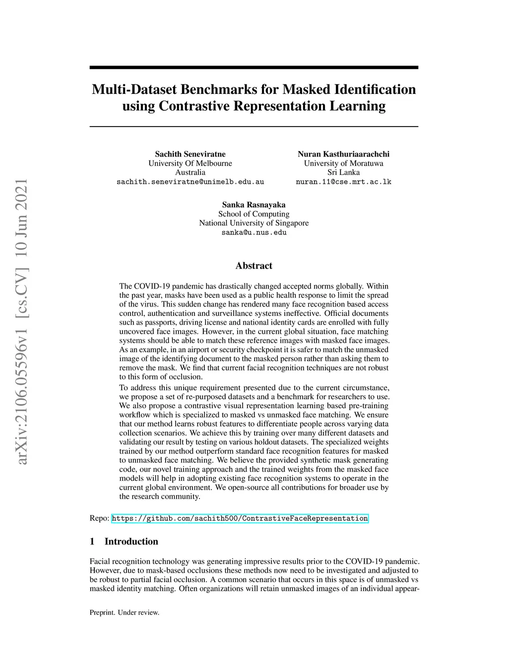 Multi-Dataset Benchmarks for Masked Identification using Contrastive