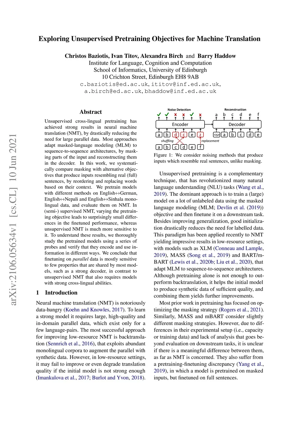 Exploring Unsupervised Pretraining Objectives for Machine Translation