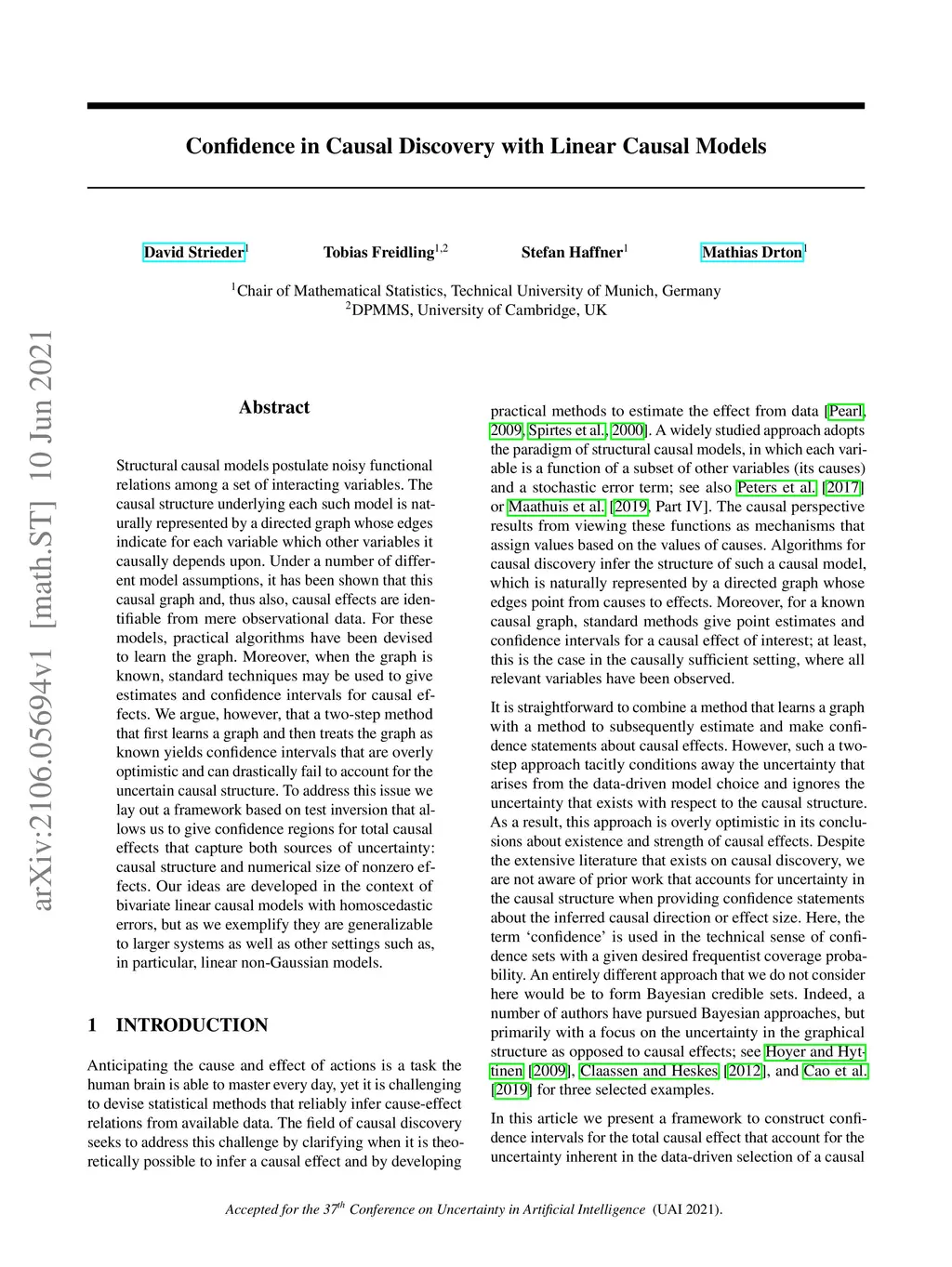 Structural causal models postulate noisy functional relations among a set of interacting variables. The causal structure underlying each such model is naturally represented by a directed graph whose edges indicate for each variable which other variables it causally depends upon. Under a number of different model assumptions, it has been shown that this causal graph and, thus also, causal effects are identifiable from mere observational data. For these models, practical algorithms have been devised to learn the graph. Moreover, when the graph is known, standard techniques may be used to give estimates and confidence intervals for causal effects. We argue, however, that a two-step method that first learns a graph and then treats the graph as known yields confidence intervals that are overly optimistic and can drastically fail to account for the uncertain causal structure. To address this issue we lay out a framework based on test inversion that allows us to give confidence regions for total causal effects that capture both sources of uncertainty: causal structure and numerical size of nonzero effects. Our ideas are developed in the context of bivariate linear causal models with homoscedastic errors, but as we exemplify they are generalizable to larger systems as well as other settings such as, in particular, linear non-Gaussian models.