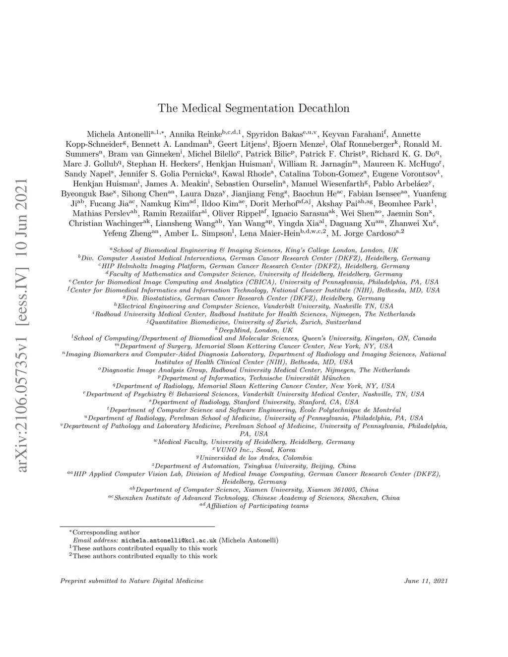 International challenges have become the de facto standard for comparative assessment of image analysis algorithms given a specific task. Segmentation is so far the most widely investigated medical image processing task, but the various segmentation challenges have typically been organized in isolation, such that algorithm development was driven by the need to tackle a single specific clinical problem. We hypothesized that a method capable of performing well on multiple tasks will generalize well to a previously unseen task and potentially outperform a custom-designed solution. To investigate the hypothesis, we organized the Medical Segmentation Decathlon (MSD) - a biomedical image analysis challenge, in which algorithms compete in a multitude of both tasks and modalities. The underlying data set was designed to explore the axis of difficulties typically encountered when dealing with medical images, such as small data sets, unbalanced labels, multi-site data and small objects. The MSD challenge confirmed that algorithms with a consistent good performance on a set of tasks preserved their good average performance on a different set of previously unseen tasks. Moreover, by monitoring the MSD winner for two years, we found that this algorithm continued generalizing well to a wide range of other clinical problems, further confirming our hypothesis. Three main conclusions can be drawn from this study: (1) state-of-the-art image segmentation algorithms are mature, accurate, and generalize well when retrained on unseen tasks; (2) consistent algorithmic performance across multiple tasks is a strong surrogate of algorithmic generalizability; (3) the training of accurate AI segmentation models is now commoditized to non AI experts.