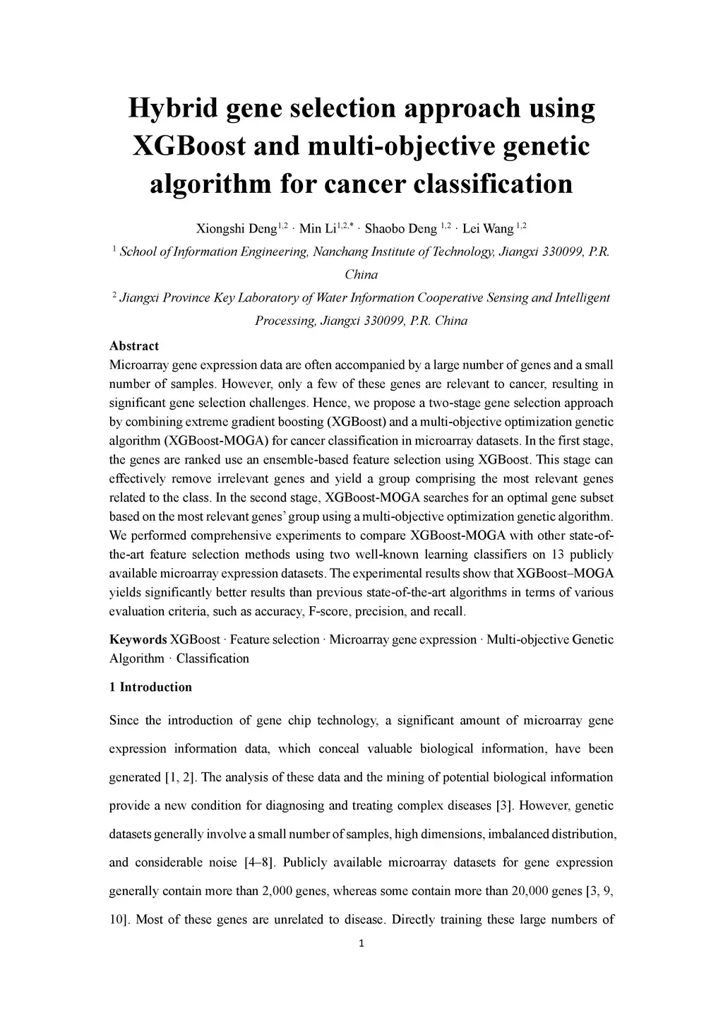 Hybrid gene selection approach using XGBoost and multi-objective genetic