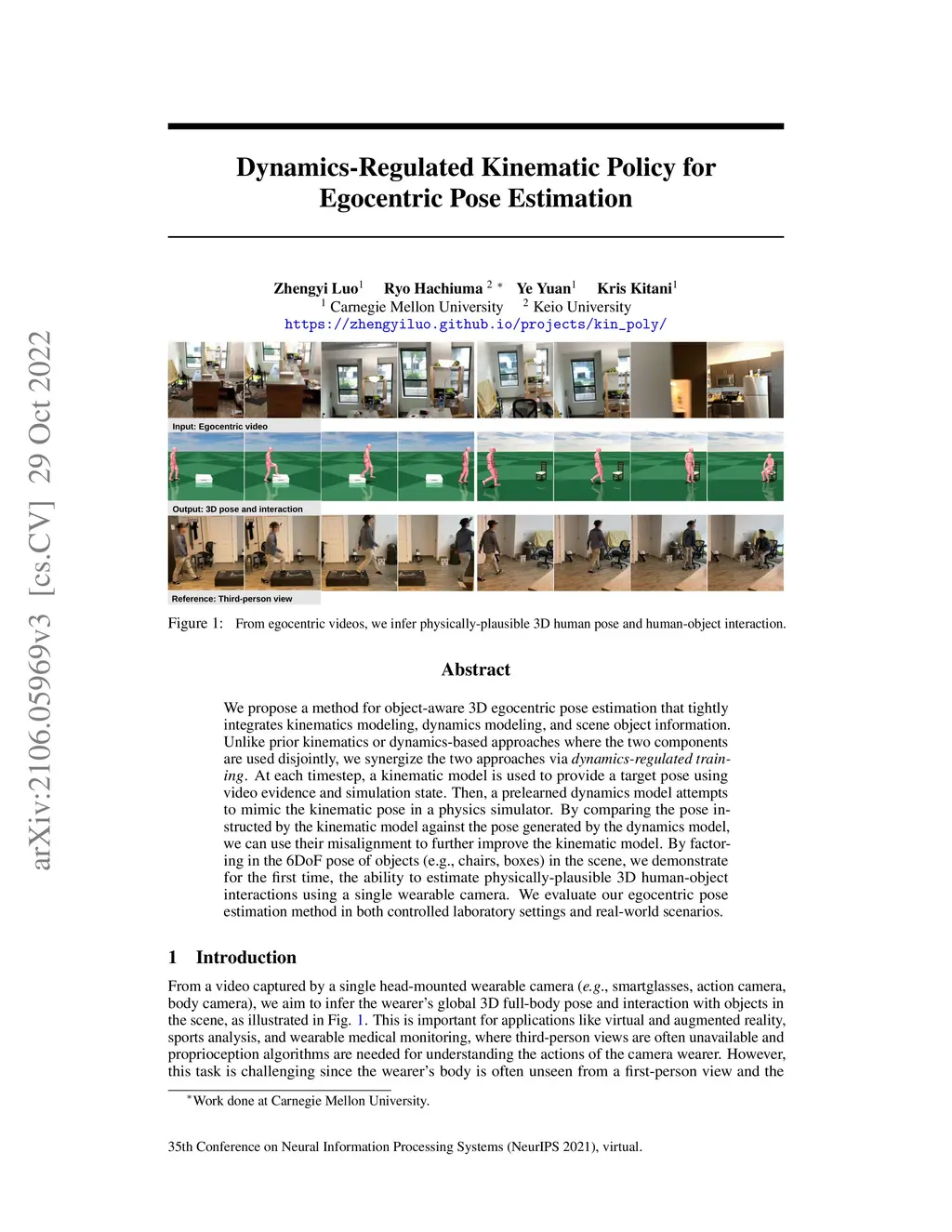 Dynamics-Regulated Kinematic Policy for Egocentric Pose Estimation