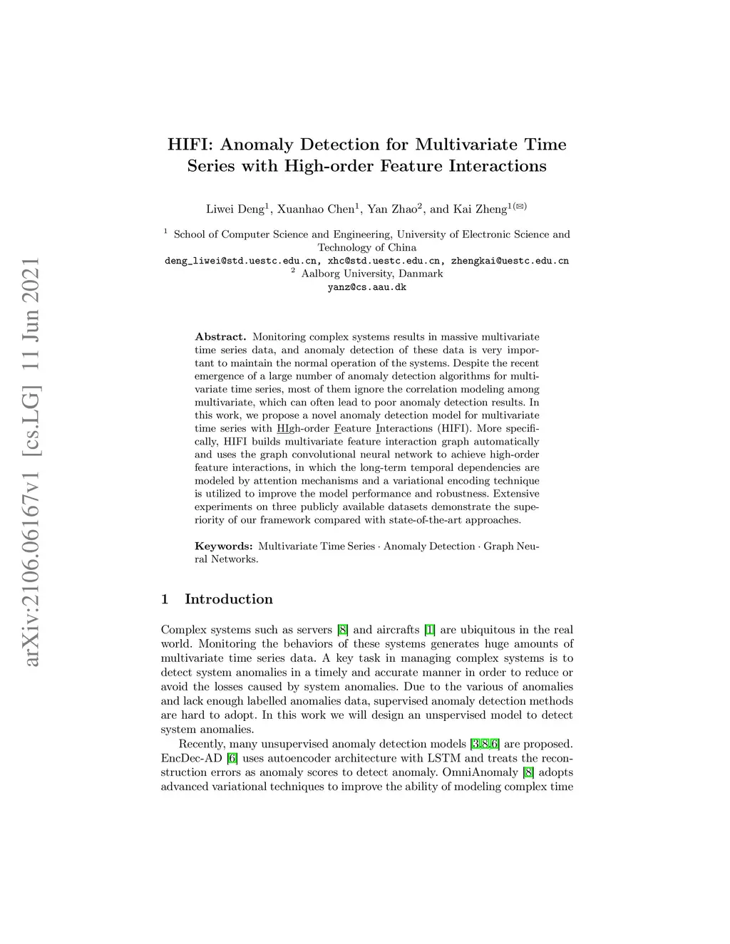 HIFI: Anomaly Detection for Multivariate Time Series with High-order