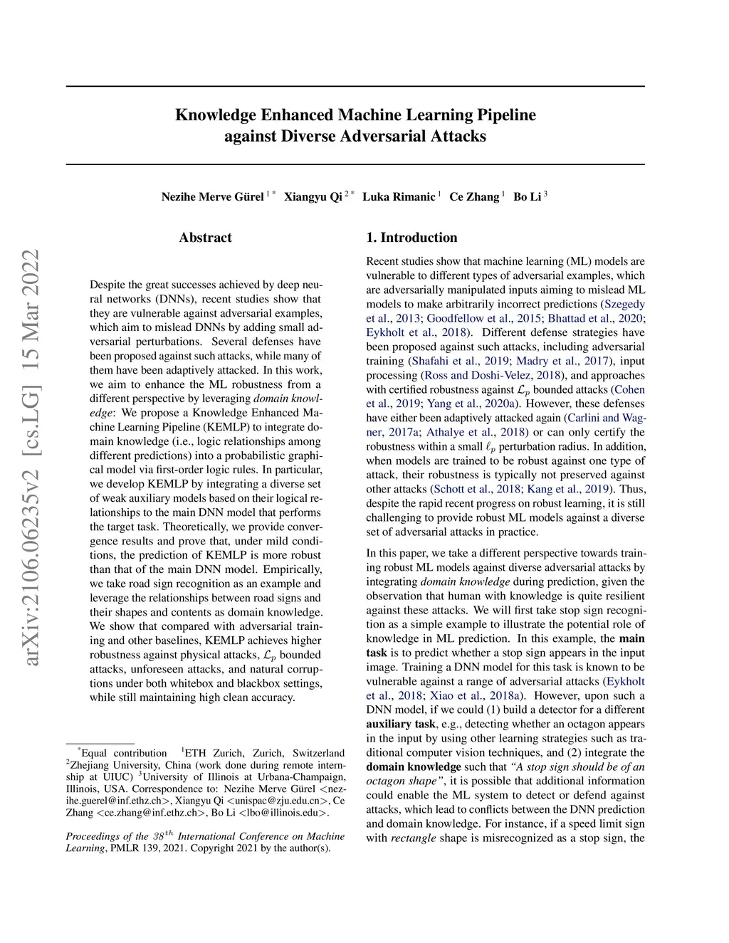 Knowledge Enhanced Machine Learning Pipeline against Diverse Adversarial